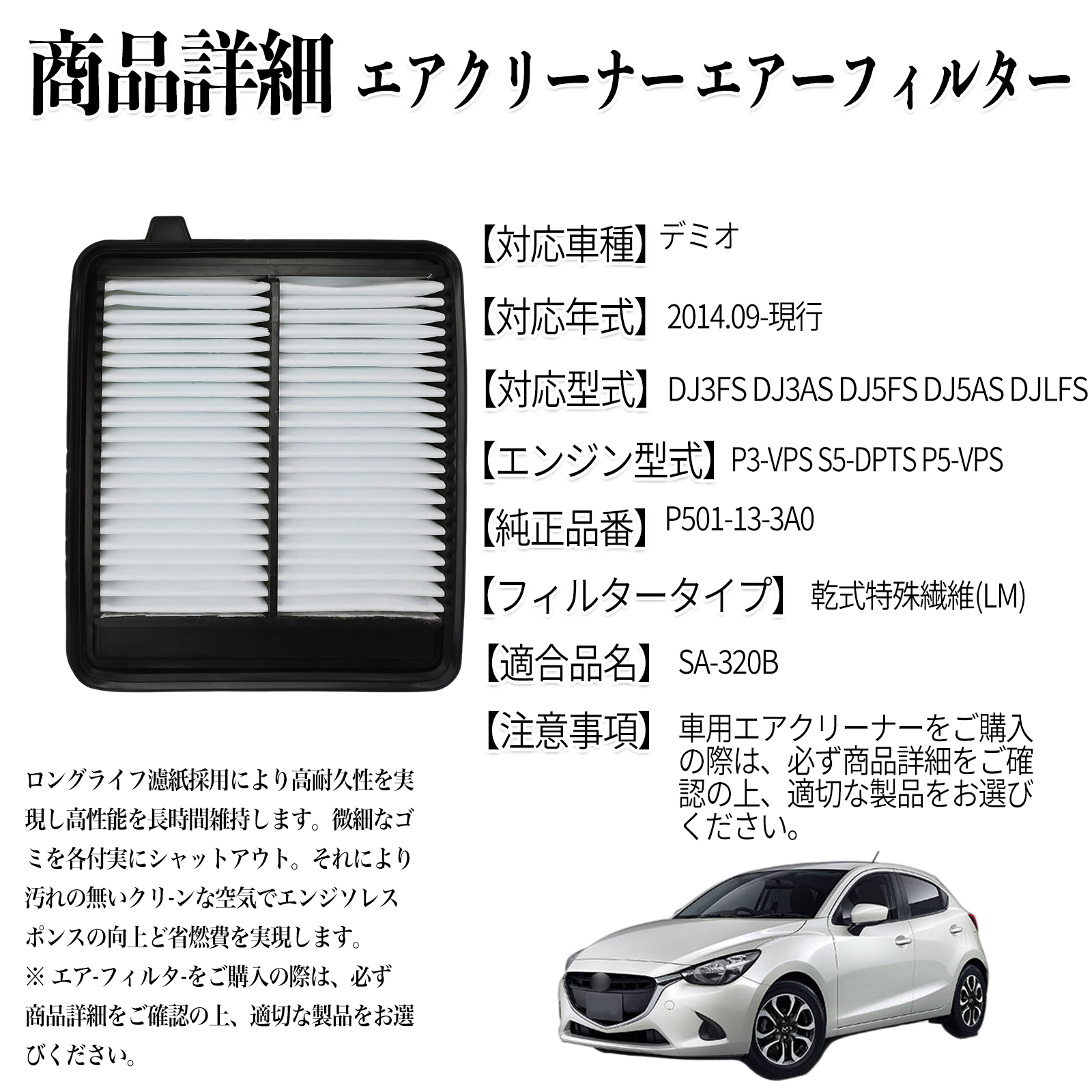 デミオ 2014.09-現行 純正互換品番 P501-13-3A0 エアフィルター エアクリーナー エアーフィルター エンジン WeCar