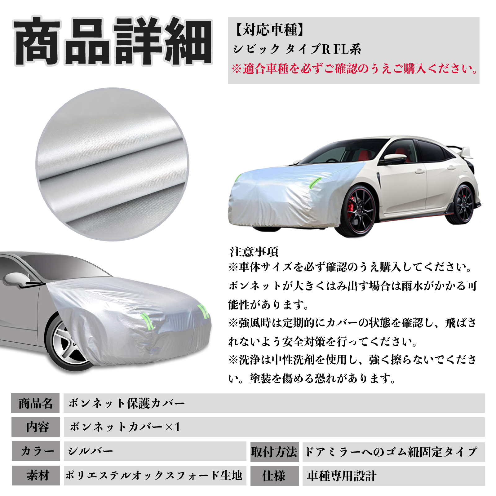 本田 シビック タイプR FL系 ボンネットカバー 防炎フロント保護カバー 車カバー 劣化 日焼け防止 アンチエイジング 防塵 蛍光反射 WeCar