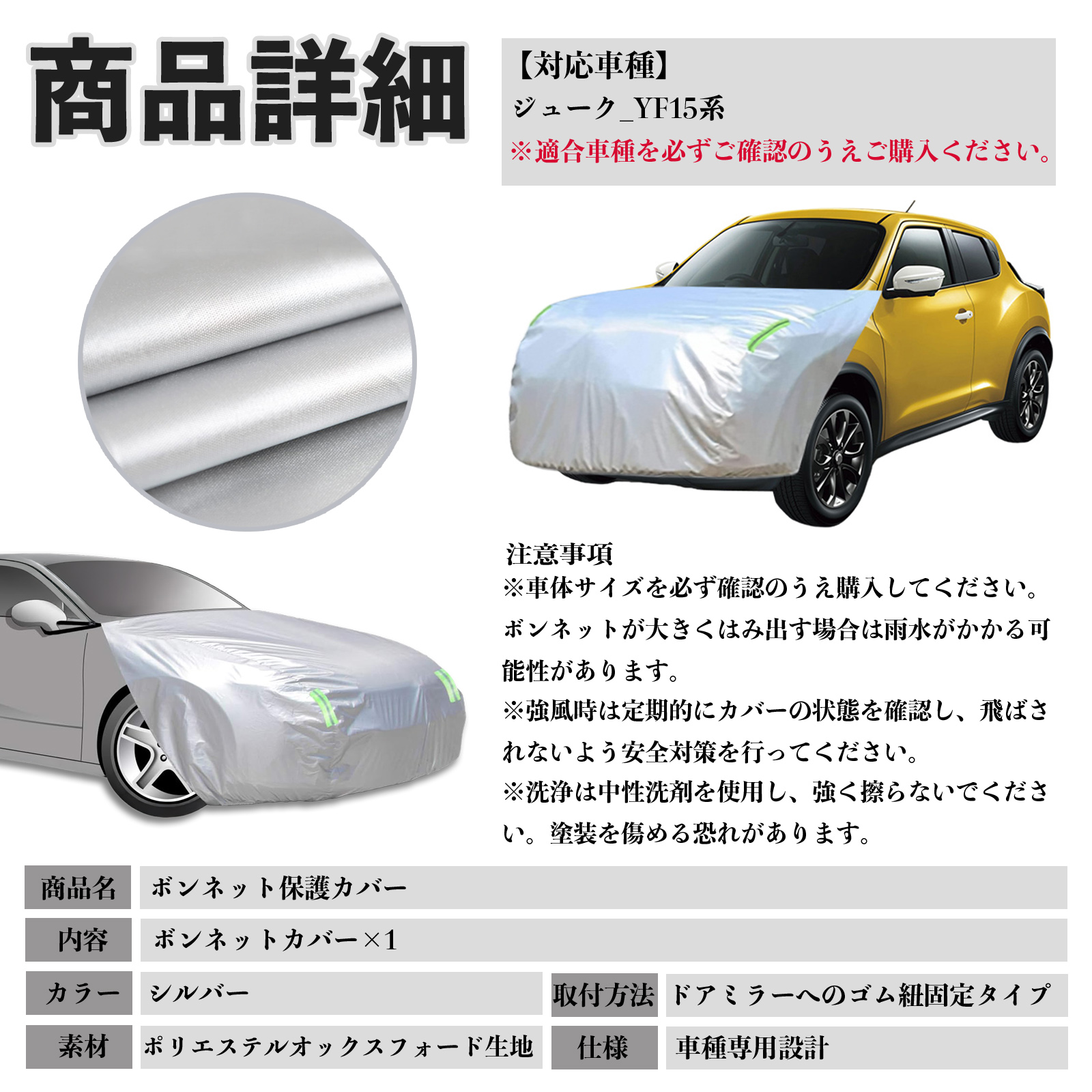 日産 ジューク?YF15系 ボンネットカバー 防炎フロント保護カバー 車カバー 劣化 日焼け防止 アンチエイジング 防塵 蛍光反射 WeCar