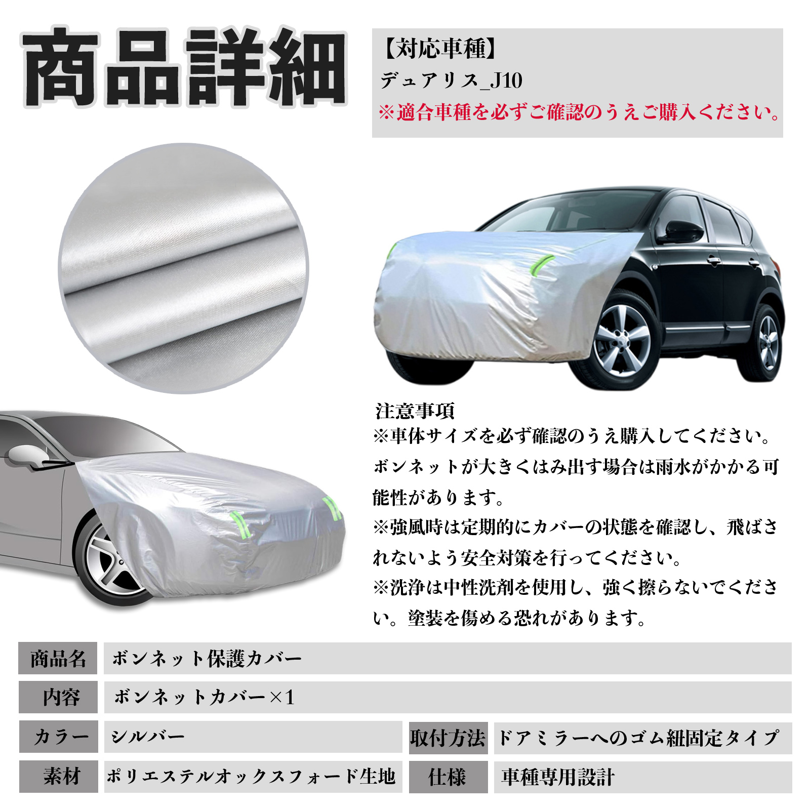 日産 デュアリス?J10 ボンネットカバー 防炎フロント保護カバー 車カバー 劣化 日焼け防止 アンチエイジング 防塵 蛍光反射 WeCar