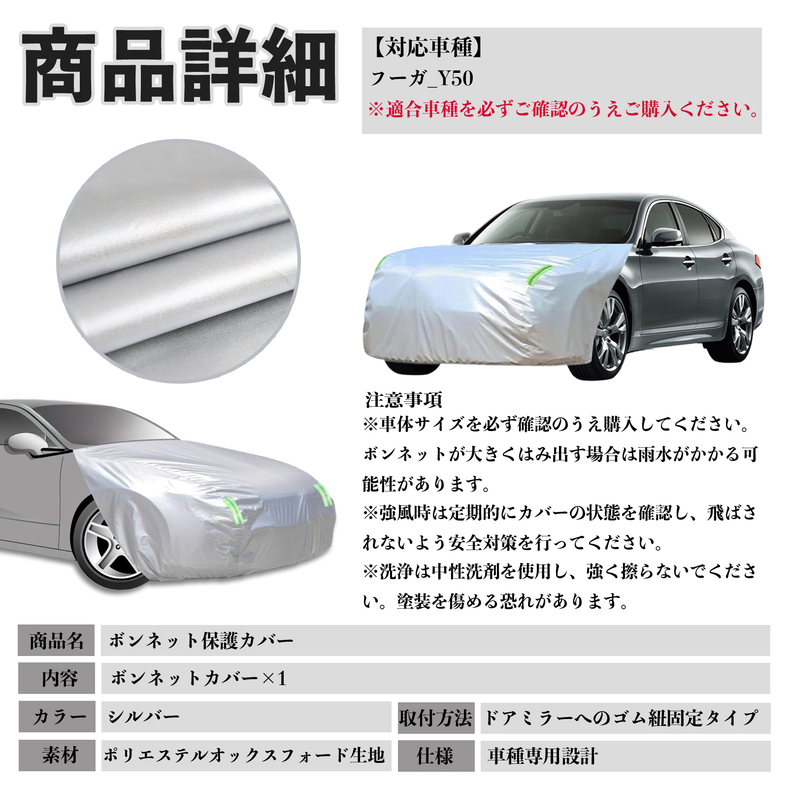 日産 フーガ?Y50 ボンネットカバー 防炎フロント保護カバー 車カバー 劣化 日焼け防止 アンチエイジング 防塵 蛍光反射 WeCar