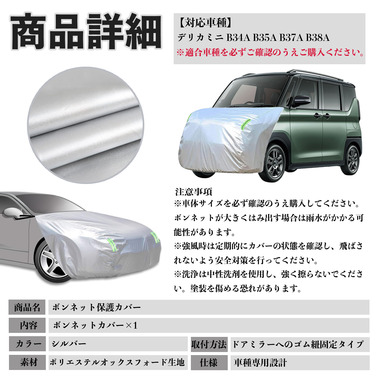 三菱 デリカミニ B34A B35A B37A B38A ボンネットカバー 防炎フロント保護カバー 車カバー 劣化 日焼け防止 アンチエイジング 防塵 蛍光反射 WeCar