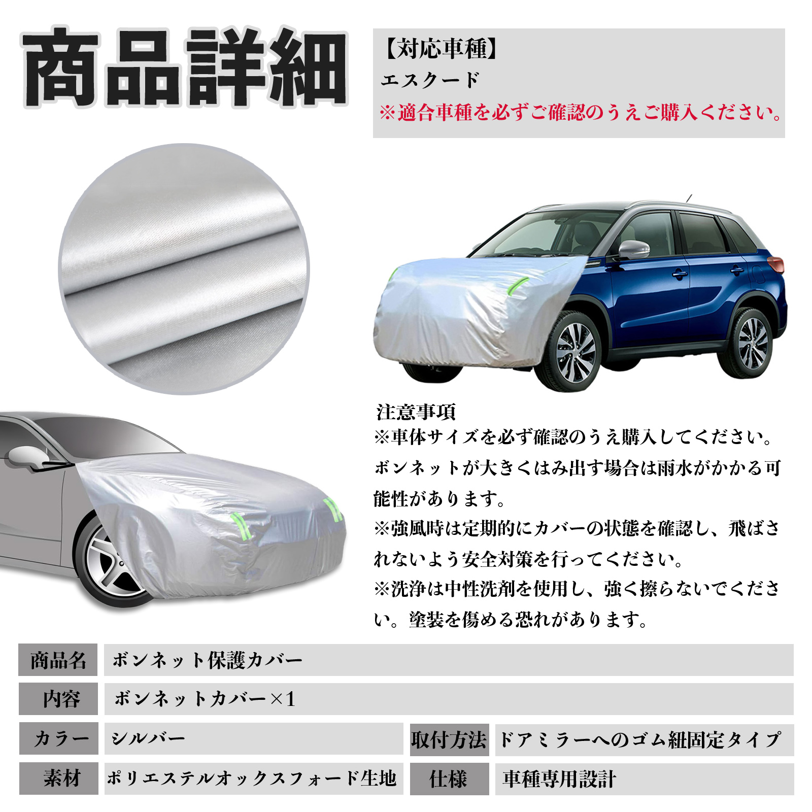 スズキ エスクード ボンネットカバー 防炎フロント保護カバー 車カバー 劣化 日焼け防止 アンチエイジング 防塵 蛍光反射 WeCar