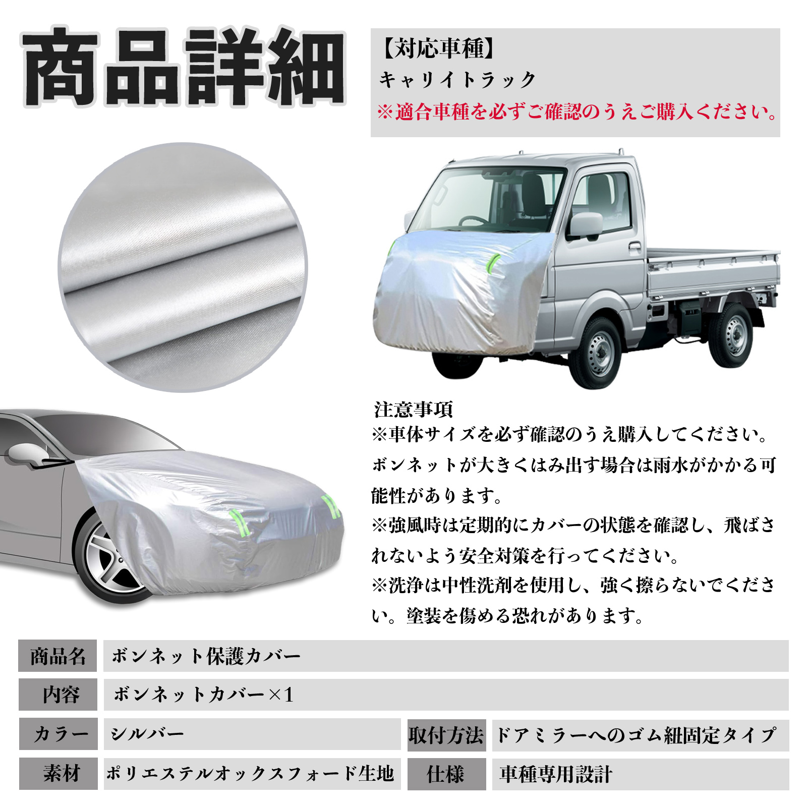 スズキ キャリイトラック ボンネットカバー 防炎フロント保護カバー 車カバー 劣化 日焼け防止 アンチエイジング 防塵 蛍光反射 WeCar