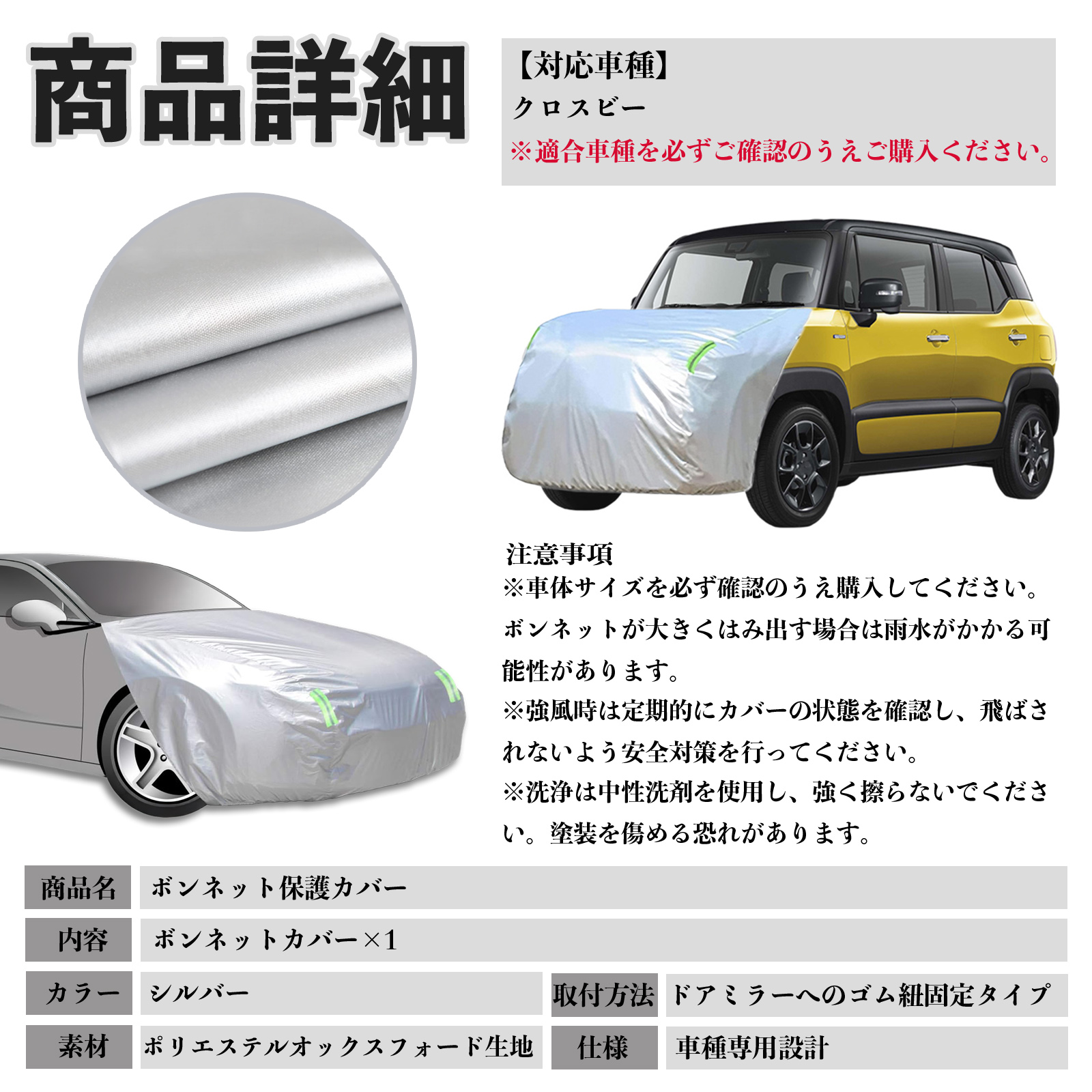 スズキ クロスビー ボンネットカバー 防炎フロント保護カバー 車カバー 劣化 日焼け防止 アンチエイジング 防塵 蛍光反射 WeCar
