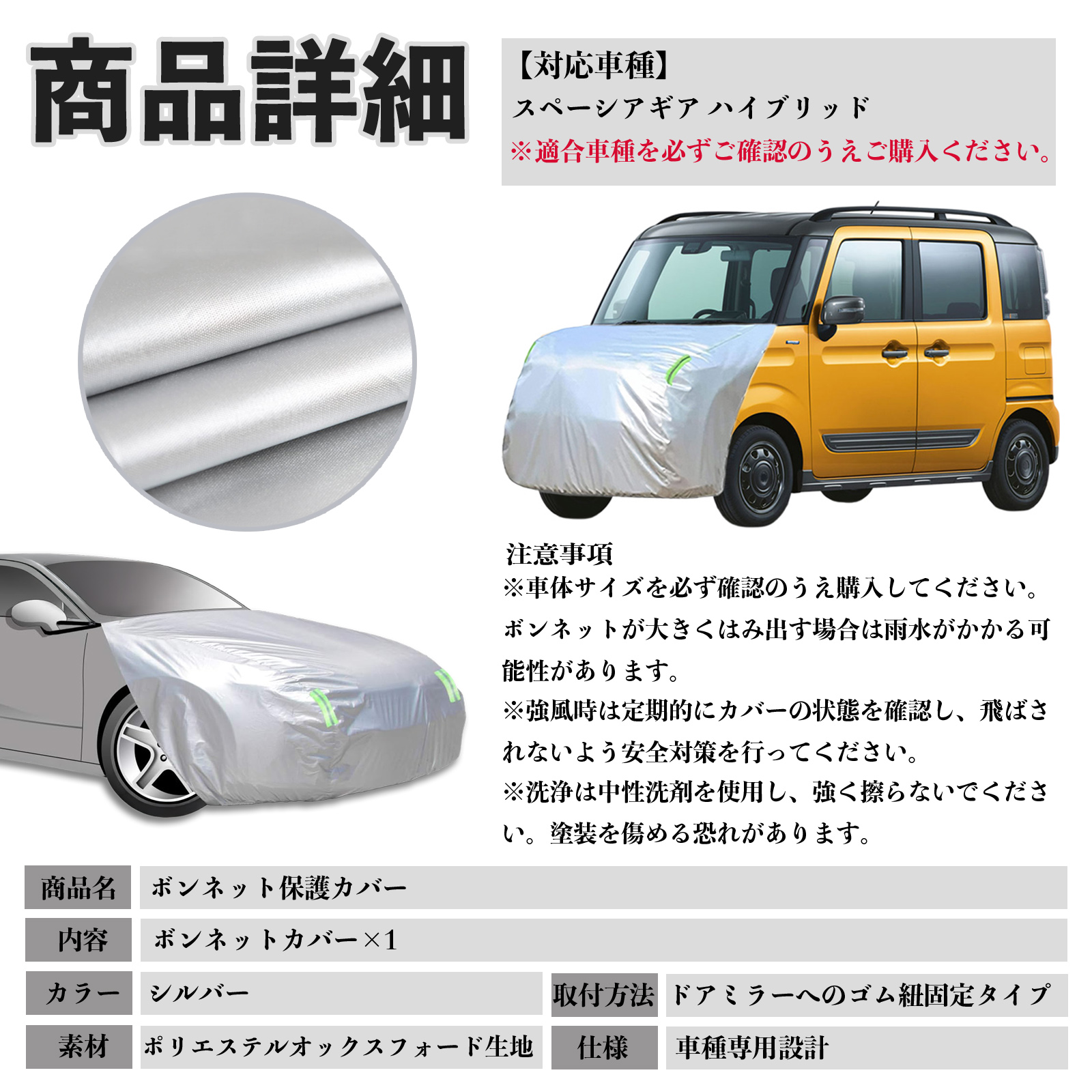 スズキ スペーシアギア ハイブリッド ボンネットカバー 防炎フロント保護カバー 車カバー 劣化 日焼け防止 アンチエイジング 防塵 蛍光反射 WeCar
