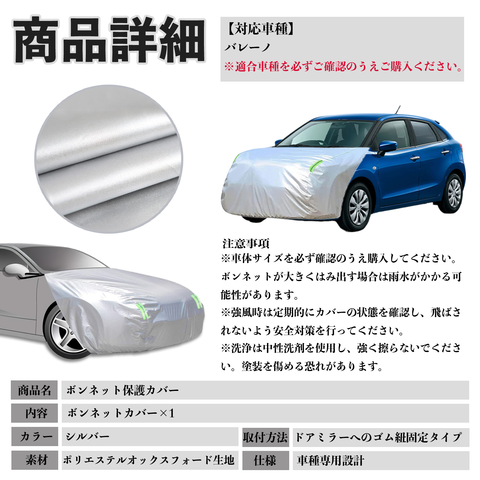 スズキ バレーノ ボンネットカバー 防炎フロント保護カバー 車カバー 劣化 日焼け防止 アンチエイジング 防塵 蛍光反射 WeCar
