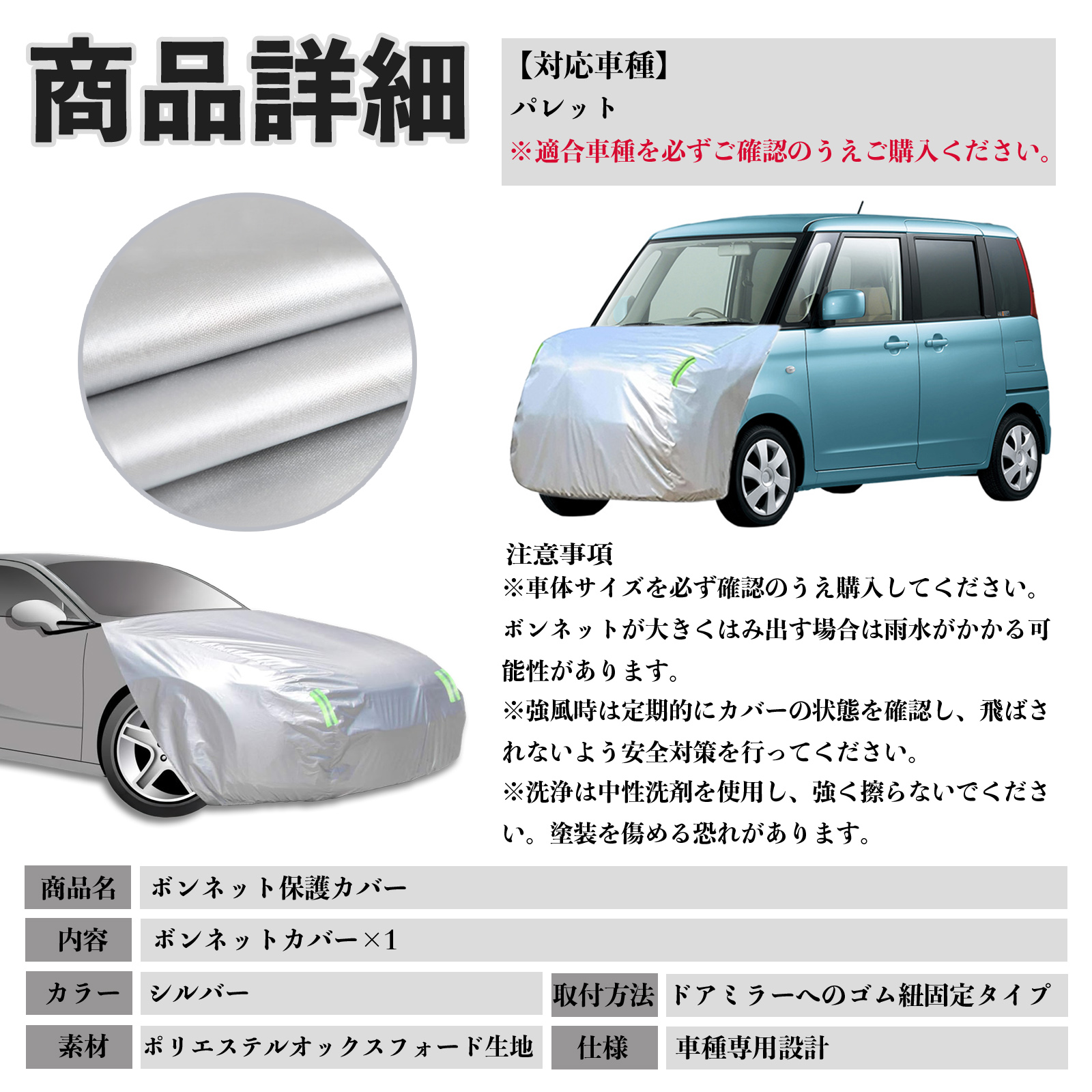 スズキ パレット ボンネットカバー 防炎フロント保護カバー 車カバー 劣化 日焼け防止 アンチエイジング 防塵 蛍光反射 WeCar