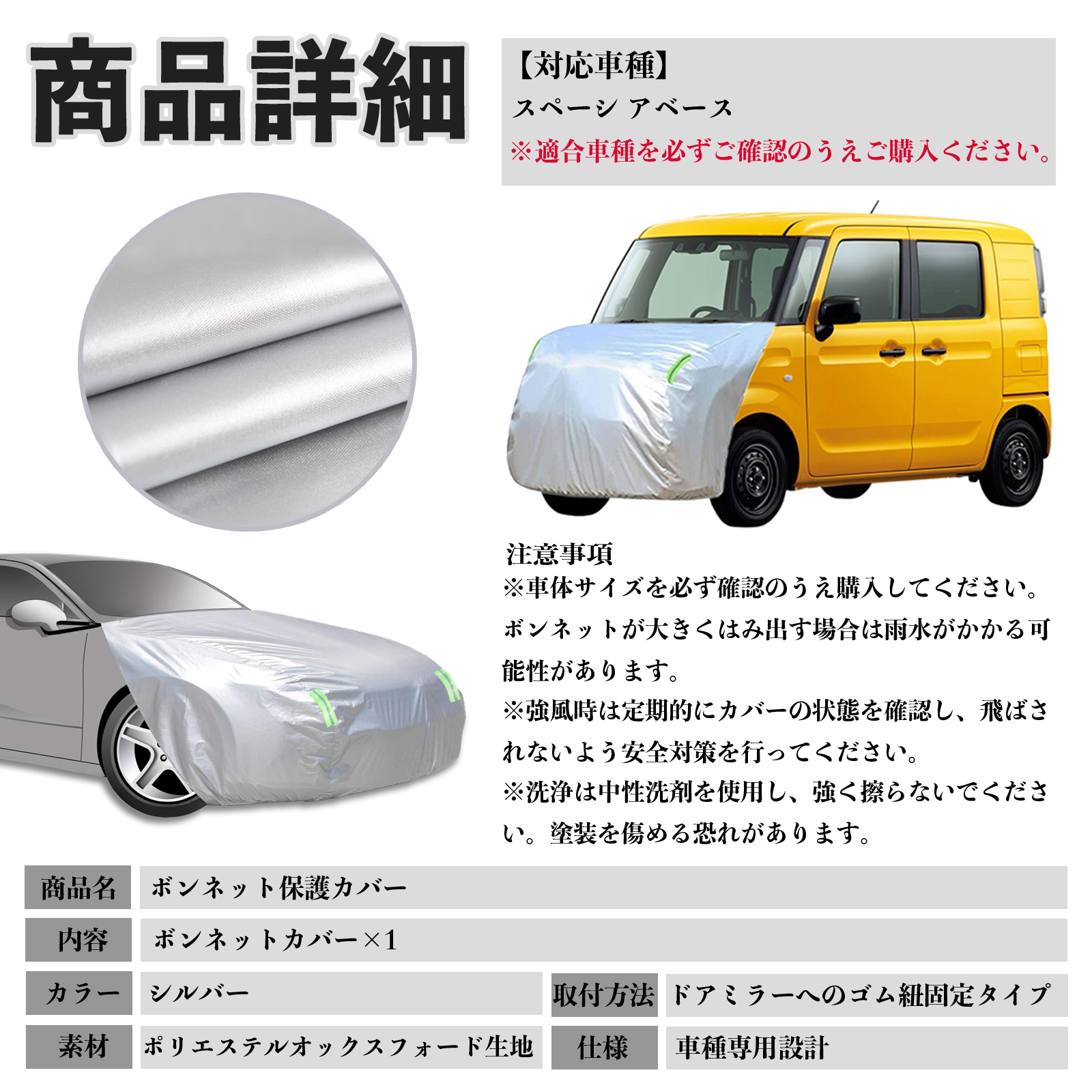 スズキ スペーシ アベース ボンネットカバー 防炎フロント保護カバー 車カバー 劣化 日焼け防止 アンチエイジング 防塵 蛍光反射 WeCar