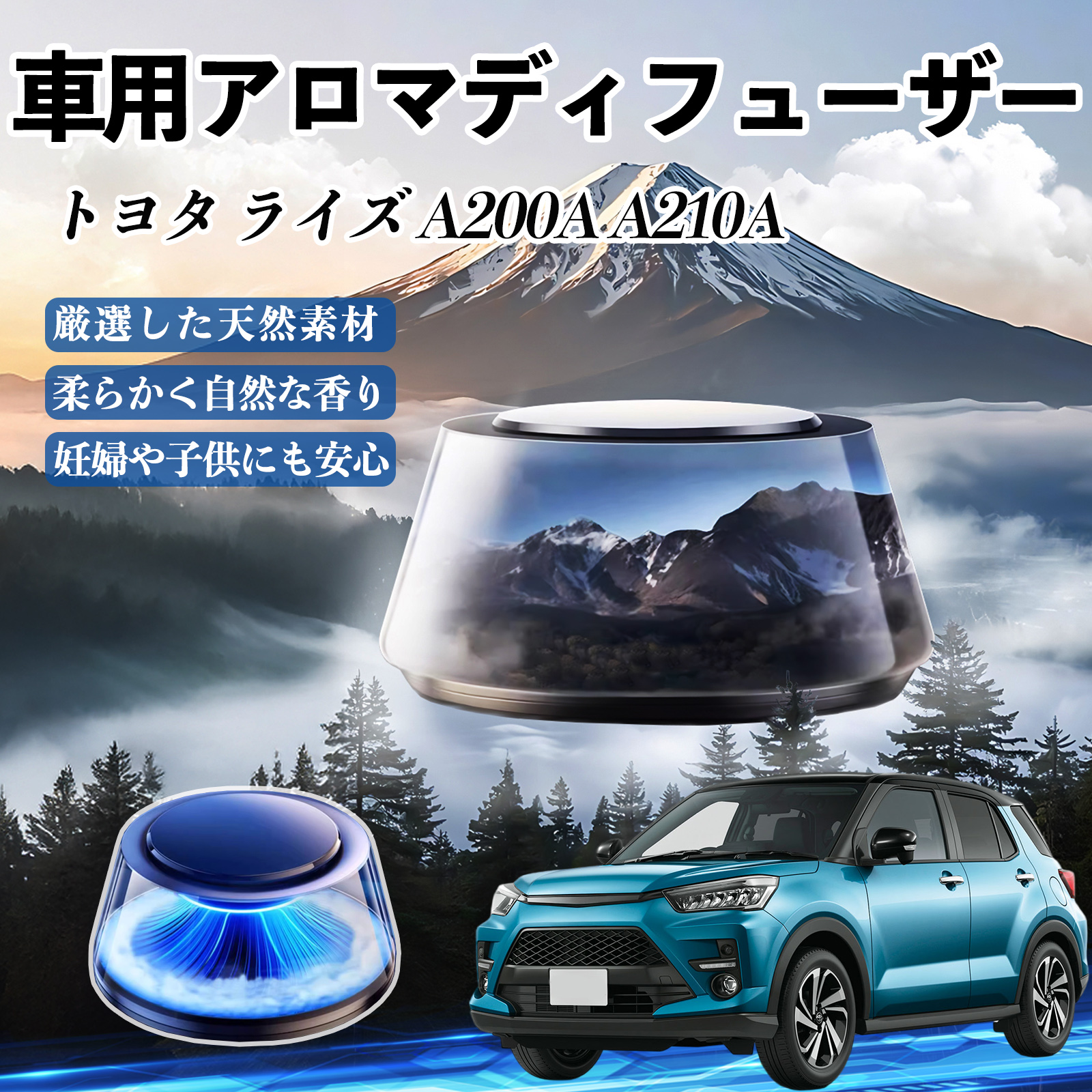 トヨタ ライズ A200A A210A 車 芳香剤 充電式アロマディフューザー 8色雰囲気ライト 精油3本付き 2025新型 消臭 空気芳香剤 飾り WeCar