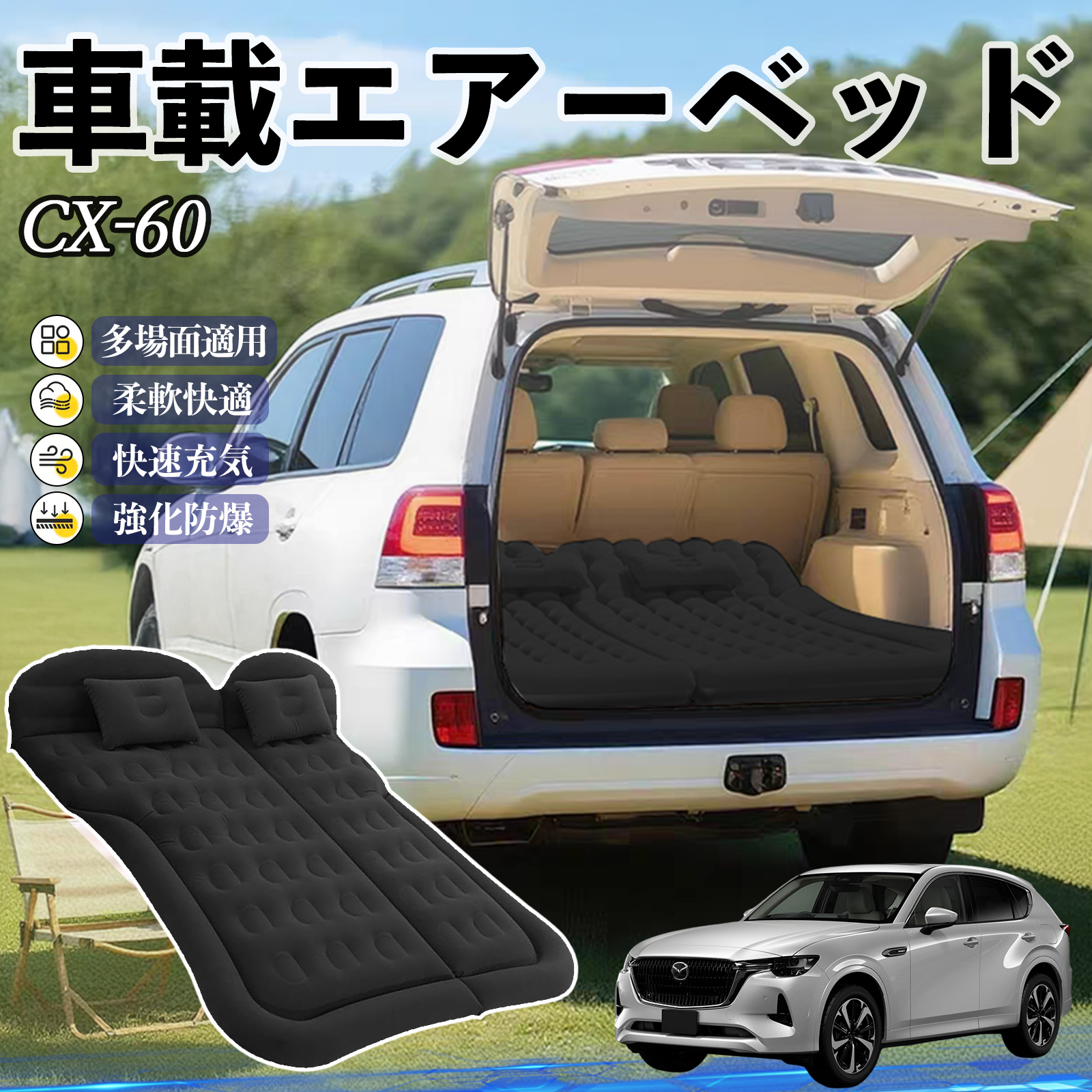 マツダ CX-60 車中泊マット エアーベッド エアーマット カーマットレス 車中泊 仮眠 後部座席 旅行用 電動ポンプ WeCar