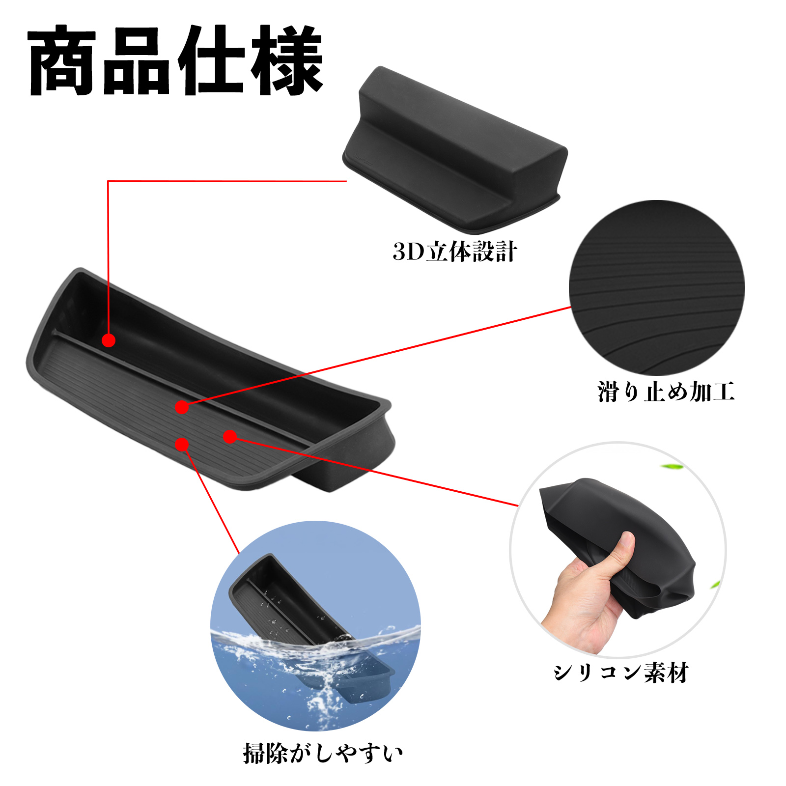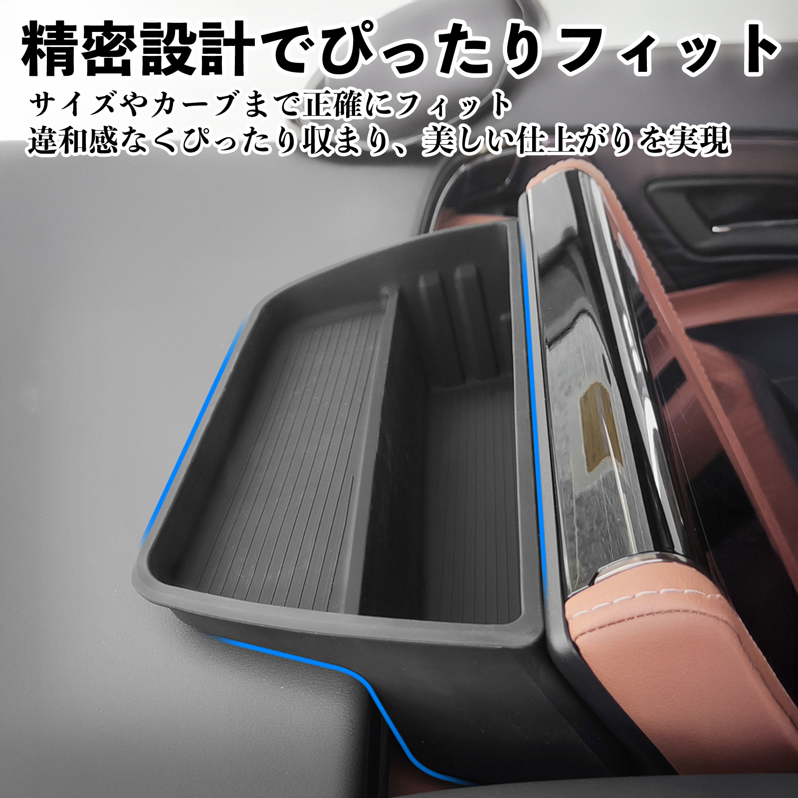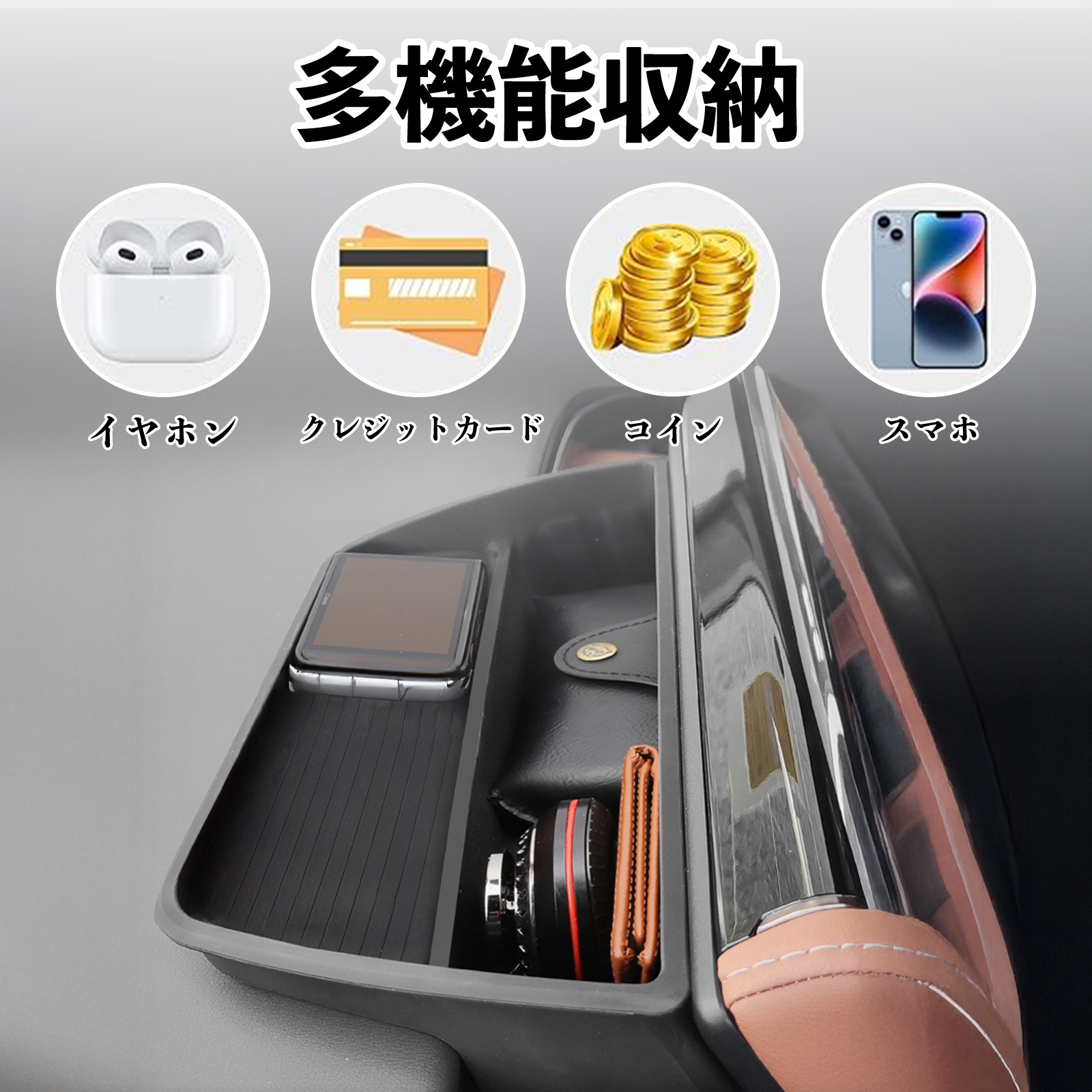 一部収納には滑り止めや緩衝機能付きで、物の滑りや純正部品への傷を防止。