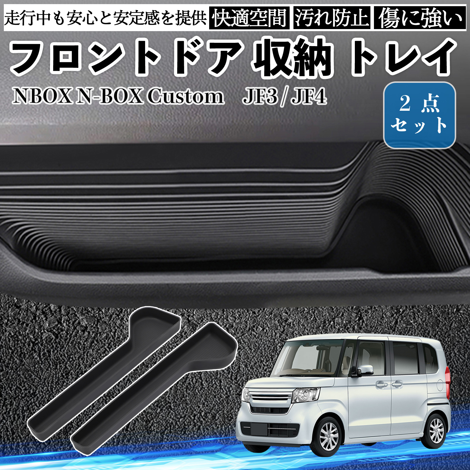 NBOX N-BOX Custom JF3 JF4 フロントドア 収納 トレイ シリコン 内装パーツ 水洗い可能 傷つき防止 保護 小物入れ 衝撃吸収 2点セット WeCar