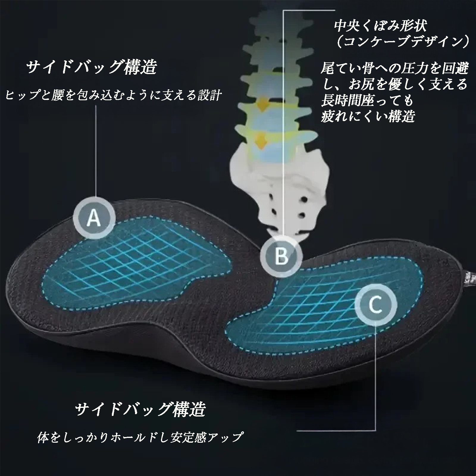 6D立体設計で背中から腰までを優しく包み込み、自然なS字カーブをサポート。