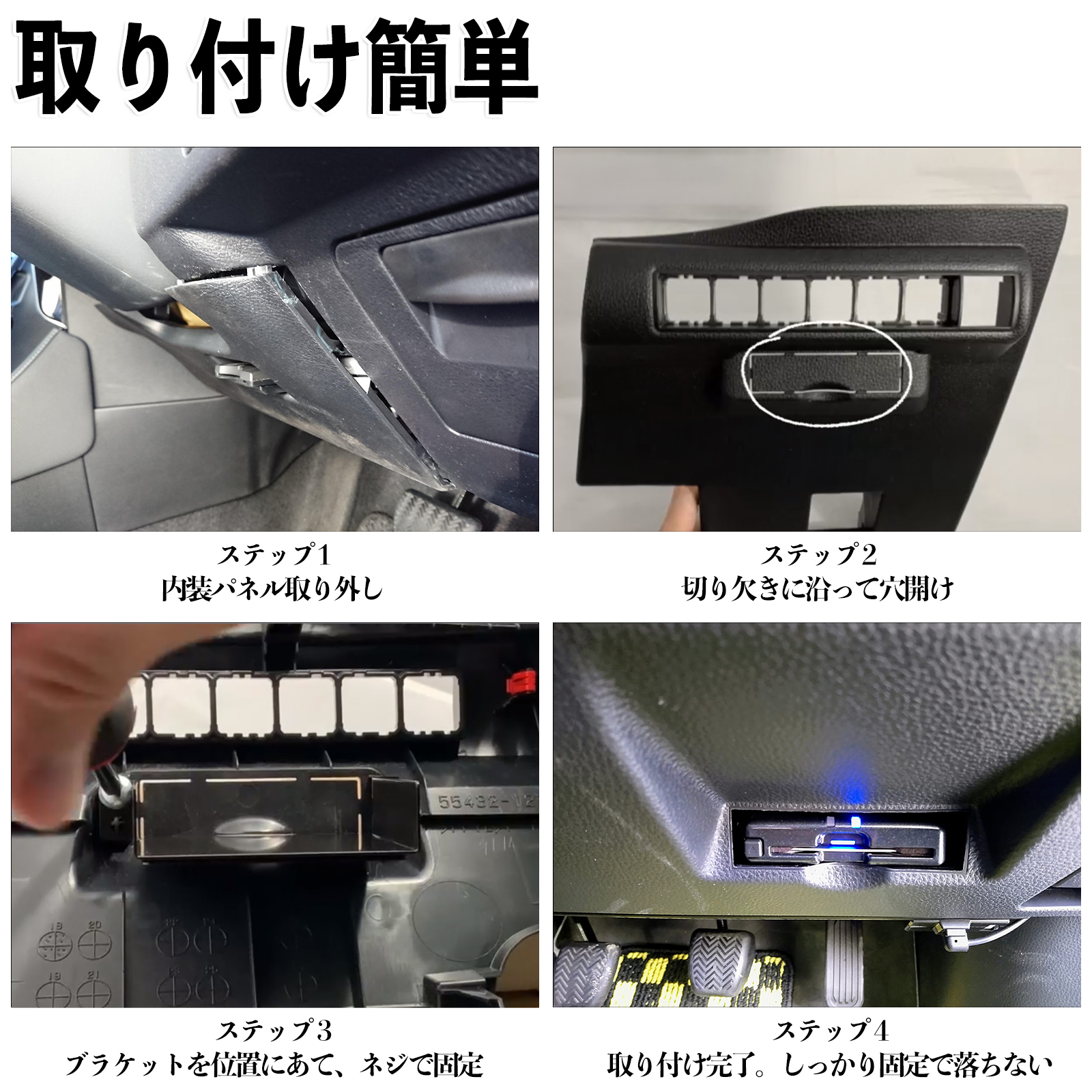 ※取り付けには、車両内装パーツの取り外し作業が必要となる場合があります。