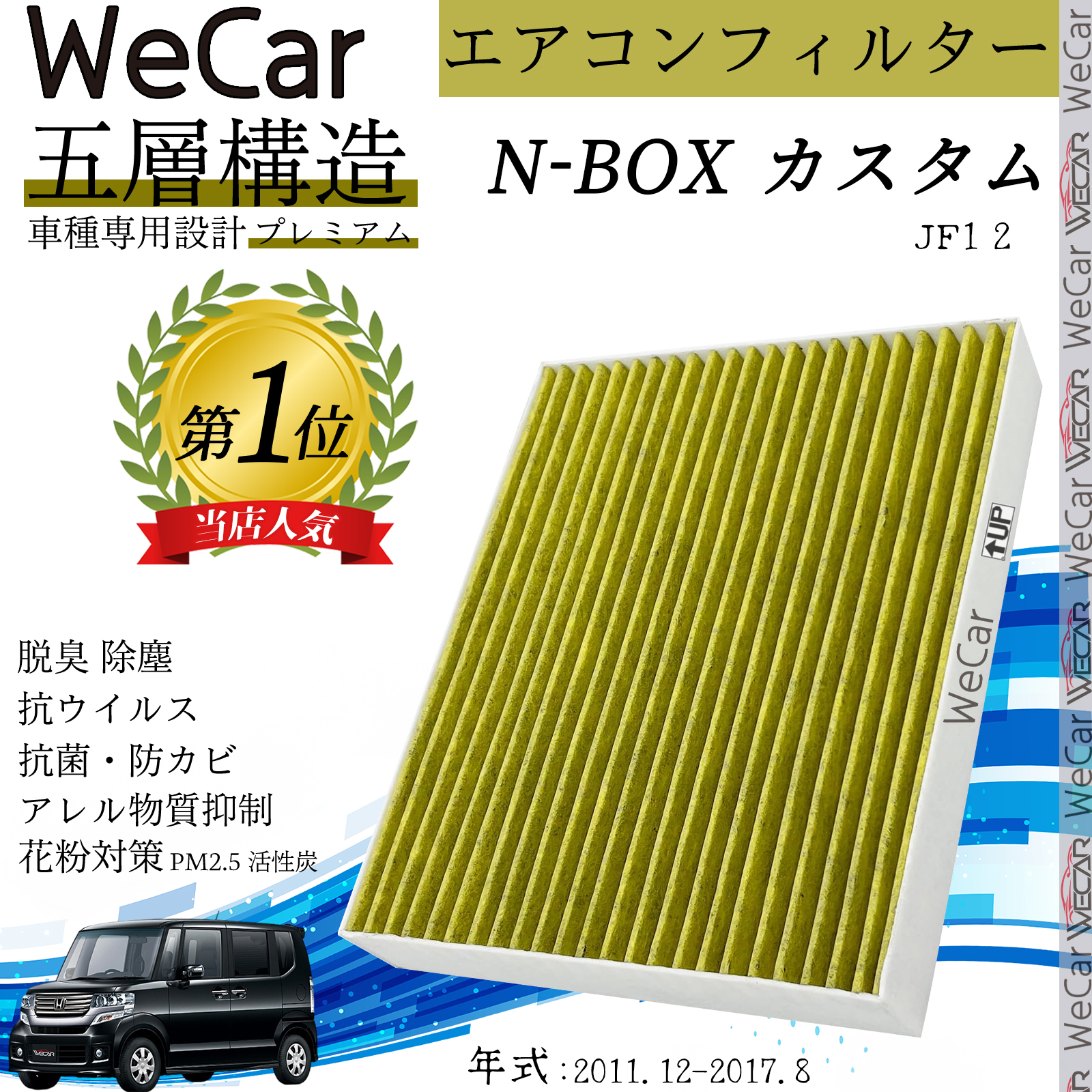 ホンダ N-BOX (カスタム) JF1 2 エアコンフィルター 活性炭入り PM2.5対応 脱臭 抗菌 防カビ 花粉 抗ウィルス 交換用 車用 特殊5層 WeCar