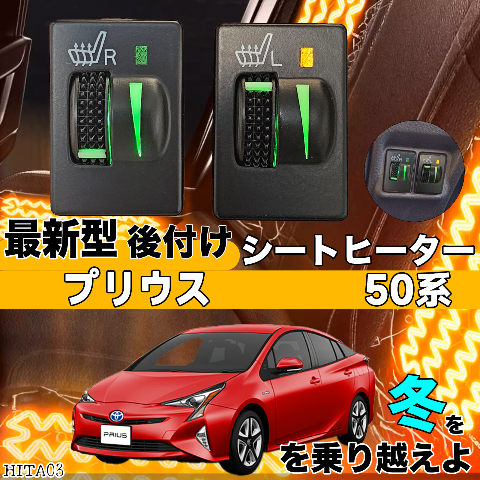 シートヒーター シートカバー 後付け プリウス 50系 ヒーターキット スイッチホール コントローラー付 純正タイプスイッチ 左右セット HI/LO切り替えタイプ