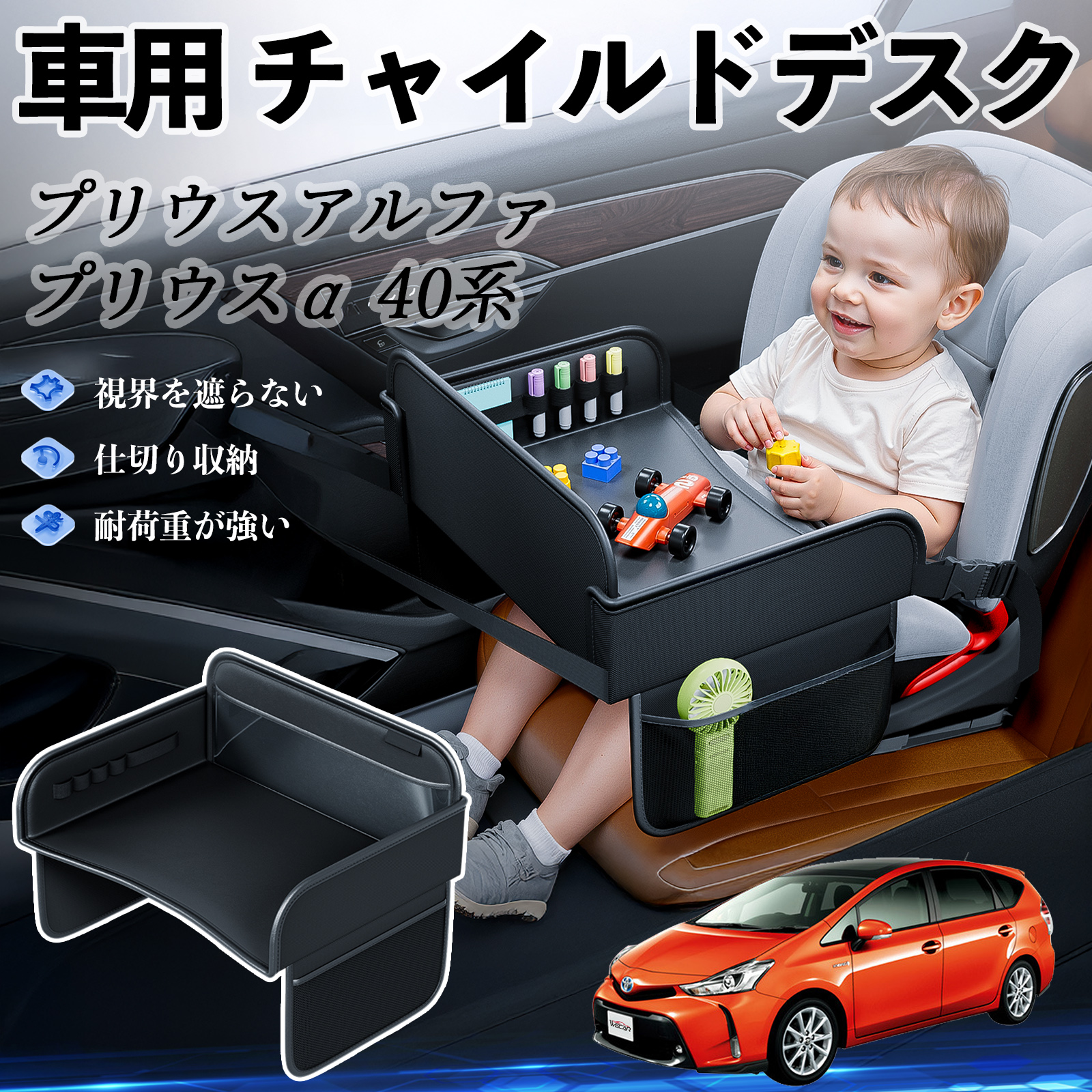 トヨタ プリウスアルファ プリウスα40系 チャイルドシート ベビーテーブル チャイルドトレイ チャイルドデスク 子供机 後部座席 折りたたみ式 WeCar