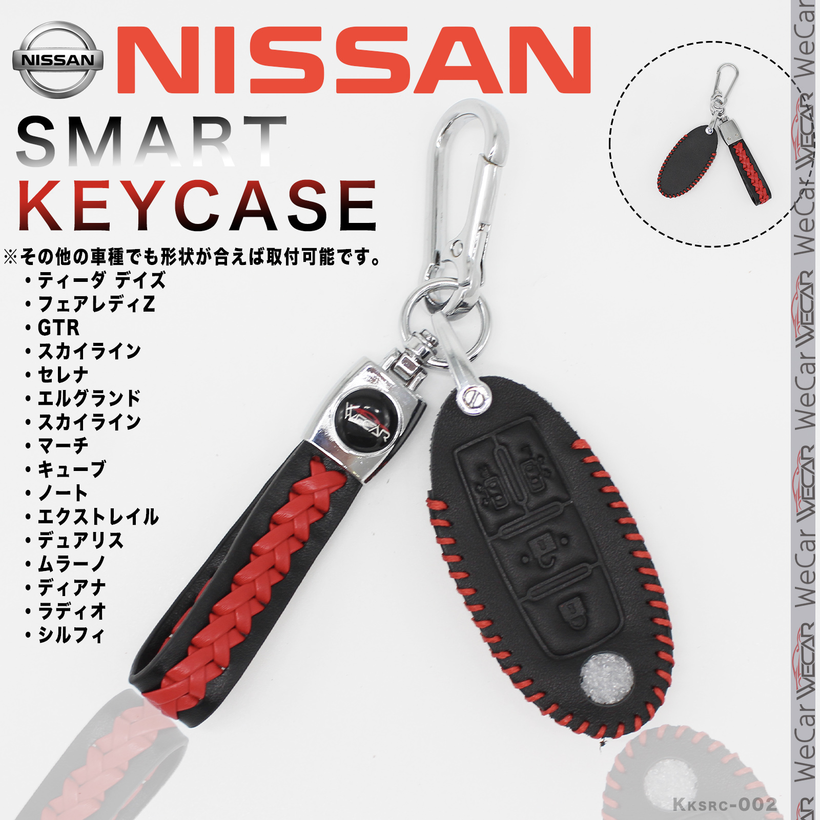 日産 NISSN キーケース 新型セレナC27 C26 C25 エルグランドE52 E51 キーカバー キーホルダー スマートキー 高級 レザー 黒&赤スティッチ 5色選択可能