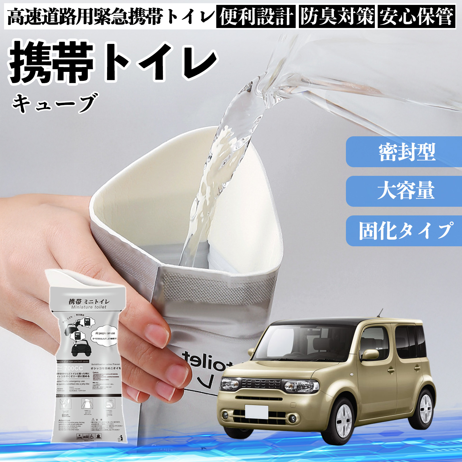 日産 キューブ CUBE Z12系 携帯トイレ 簡易トイレ ドライブ用 防災トイレ 非常用トイレ 折りたたみ 抗菌 緊急用 災害用 介護用 車中泊 キャンプ 長期保存 WeCar