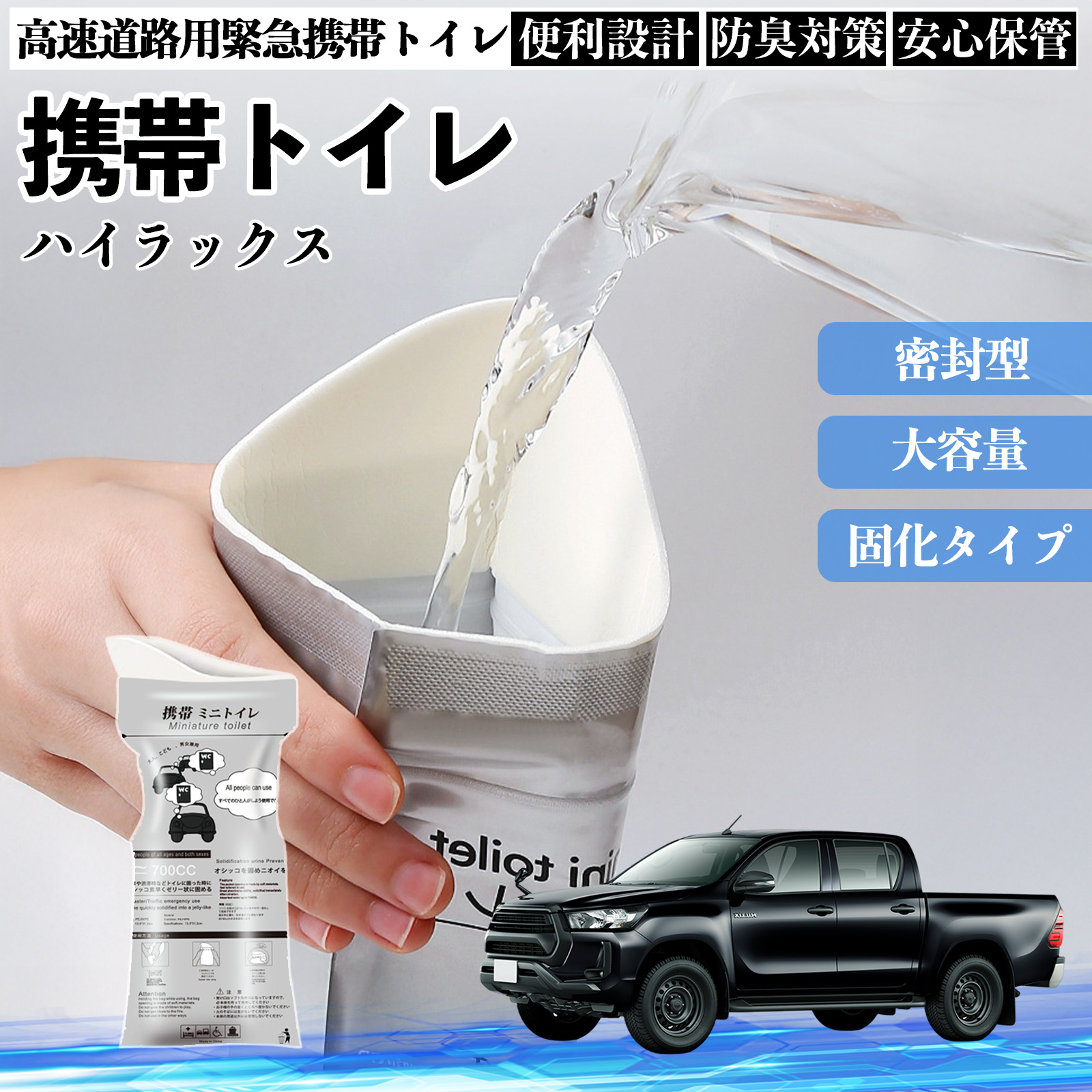トヨタ ハイラックス GUN125 携帯トイレ 簡易トイレ ドライブ用 防災トイレ 非常用トイレ 折りたたみ 抗菌 緊急用 災害用 介護用 車中泊 長期保存 WeCar