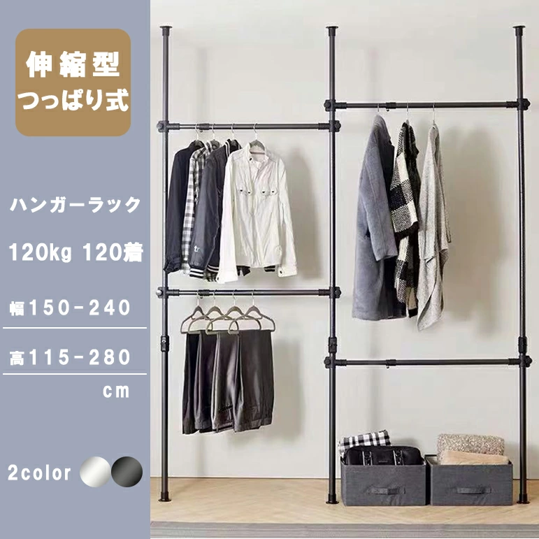 商品補足説明 ハンガーラック パイプハンガー ハンガーポール ワードローブ はんがーらっく コートハンガー つっぱり つっぱり式 突っ張り 突っ張り式 つっぱり棒 突っ張り棒 上下 2本 4本 2段 二段 ダブル 伸縮 伸縮タイプ 伸縮式 伸縮自在 つっぱりポールハンガー 衣類収納 衣類ハンガー 衣類