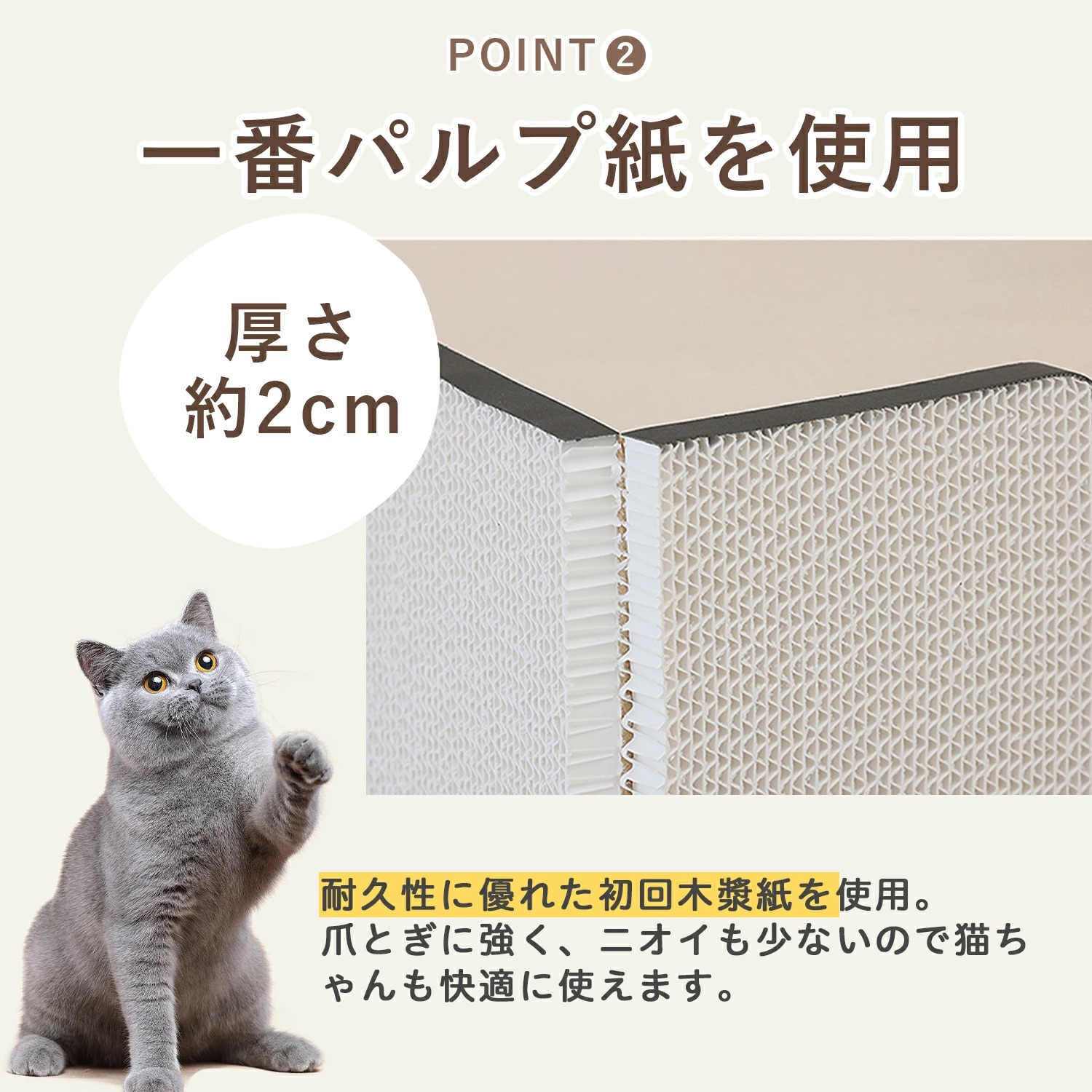 丈夫な段ボール素材を使用し、猫が思い切り爪を研いでも長持ち。