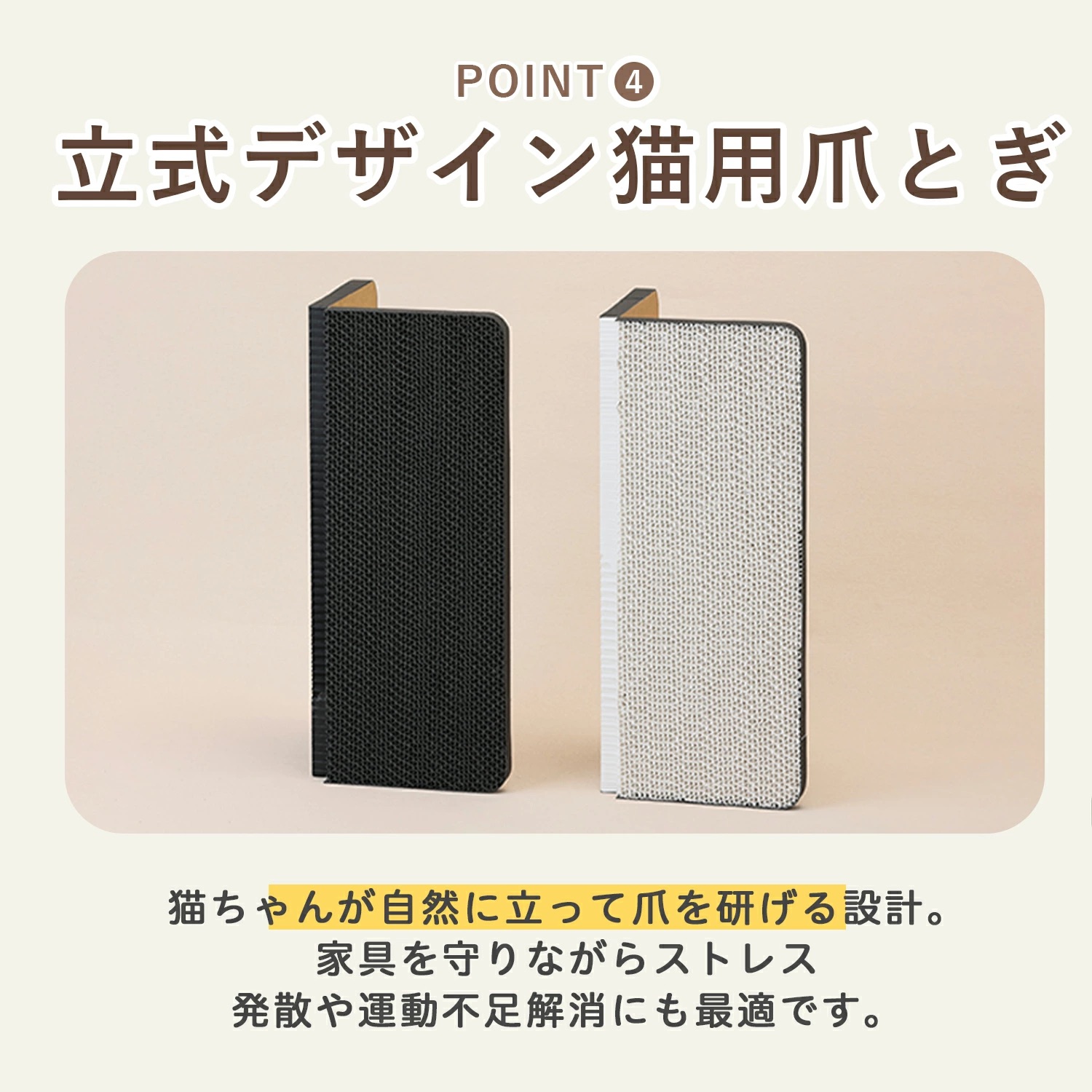 シンプルなホワイト/ブラック/ベージュカラーでインテリアに馴染みやすく、猫の健康と飼い主の暮らしをサポートする実用的なアイテムです。
