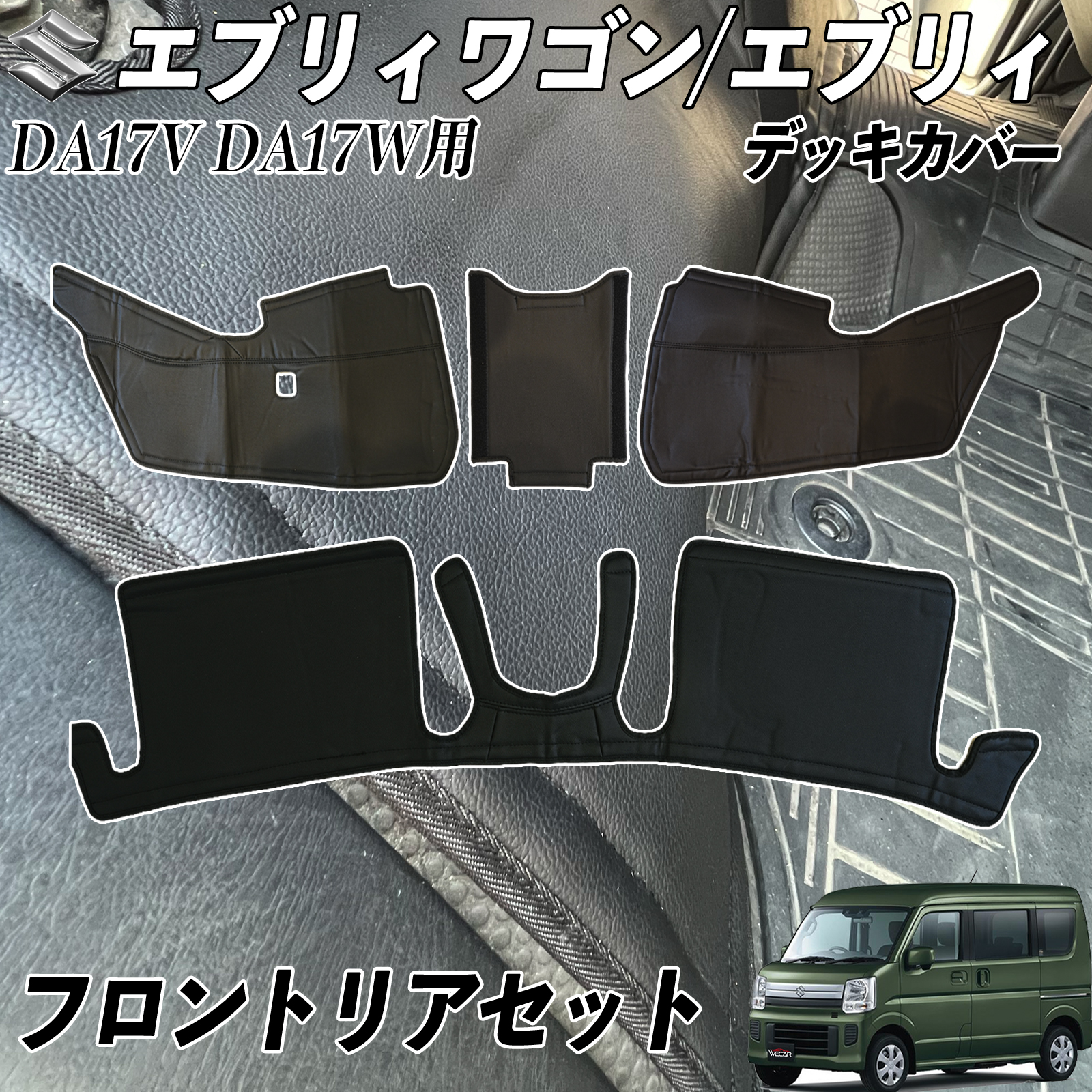 エブリイ エブリィワゴン DA17W DA17V デッキカバー フロント リア シートカバー エンジンルームカバー 断熱 傷防止 汚れ 防止 PVC 内装 レザー 4枚入り WeCar