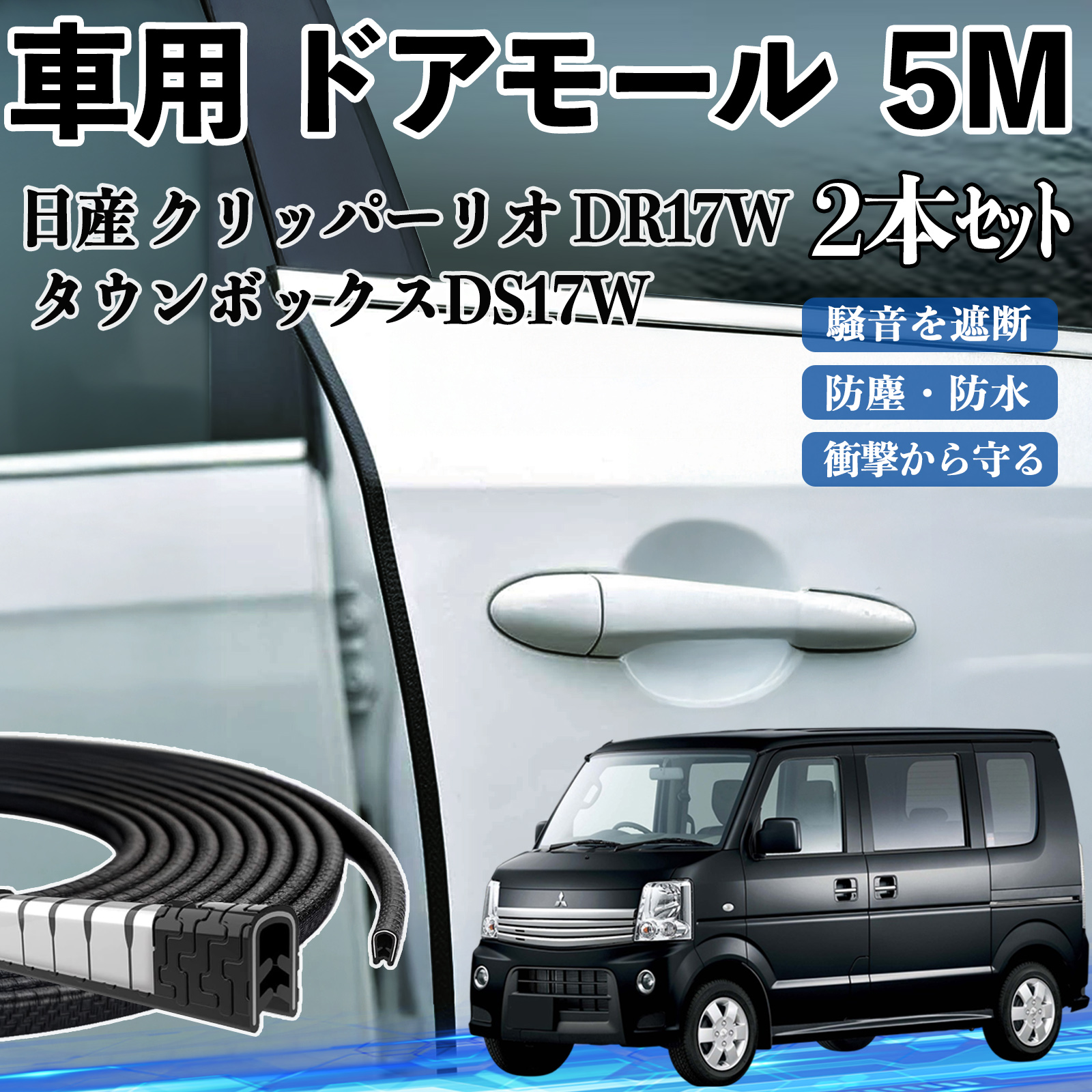 日産 クリッパーリオ DR17W タウンボックスDS17W 車 ドアモール ドアエッジモール ドアガード プロテクター U字型 傷防止 保護 騒音低減 5M 2本セット WeCar
