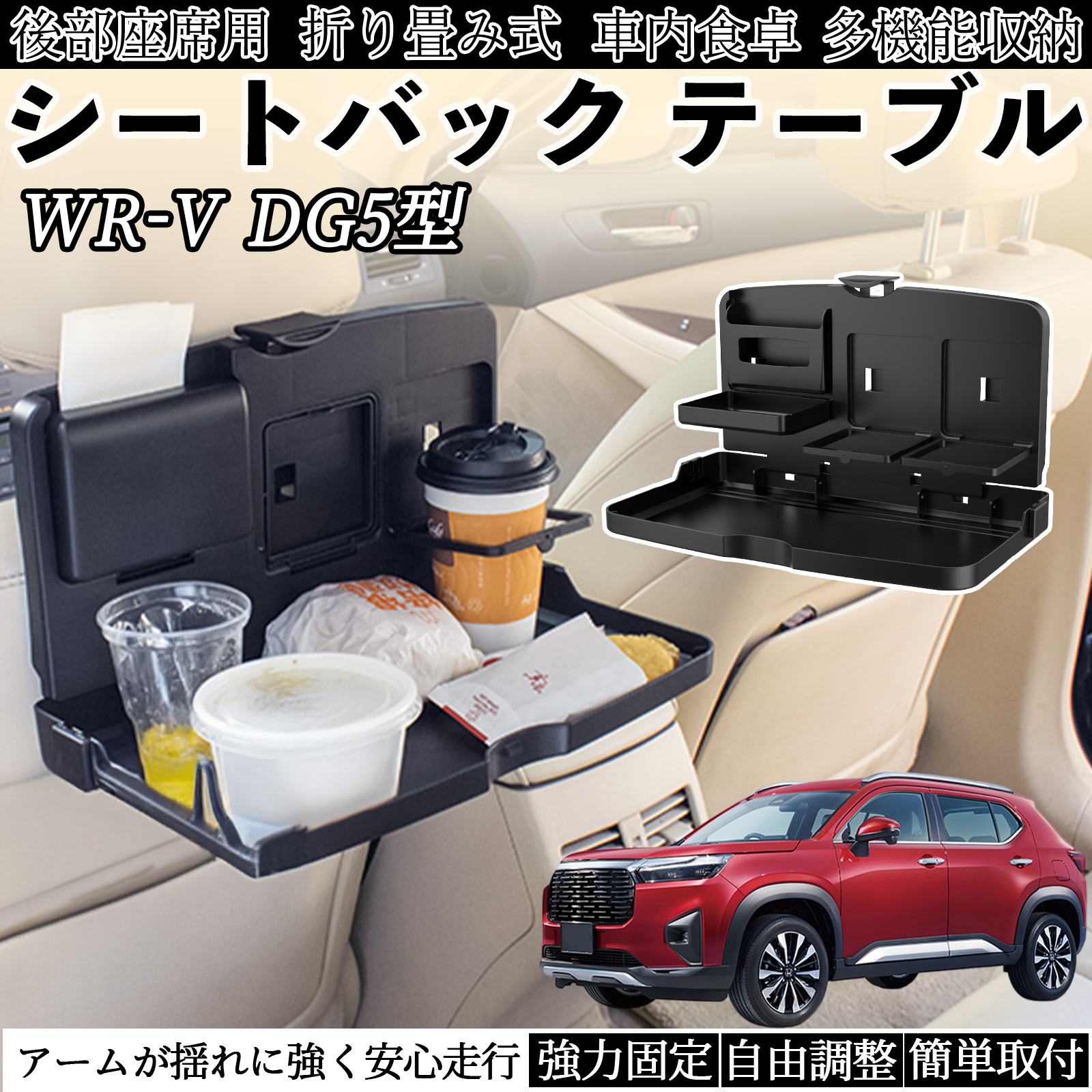 本田 WR-V DG5型 2代目 車用 テーブル トレイ リアシートトレイ リアテーブル ドリンクホルダー スマホスタンド 後部座席 WeCar
