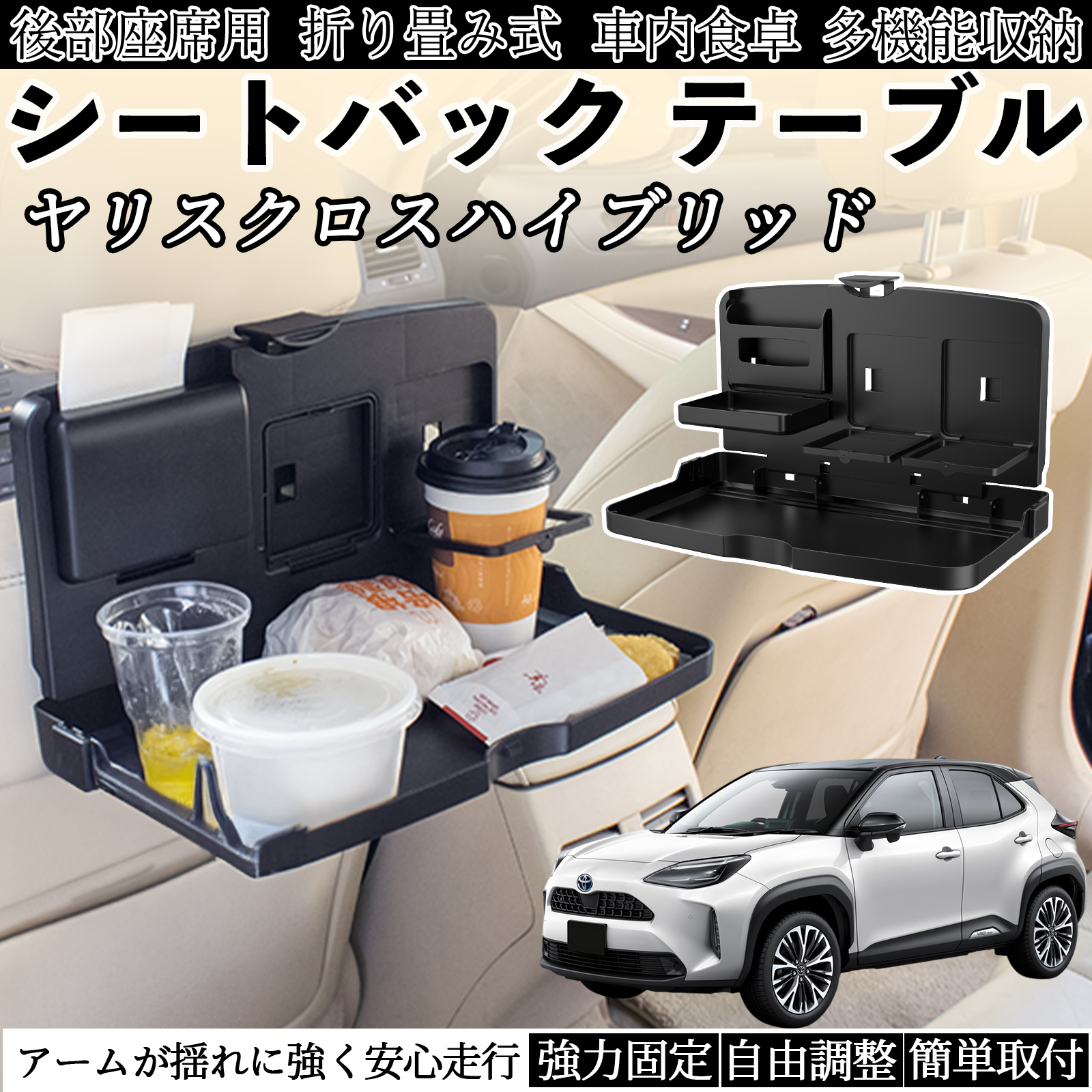 トヨタ ヤリスクロスハイブリッド 車用 テーブル トレイ リアシートトレイ リアテーブル ドリンクホルダー スマホスタンド 後部座席 WeCar