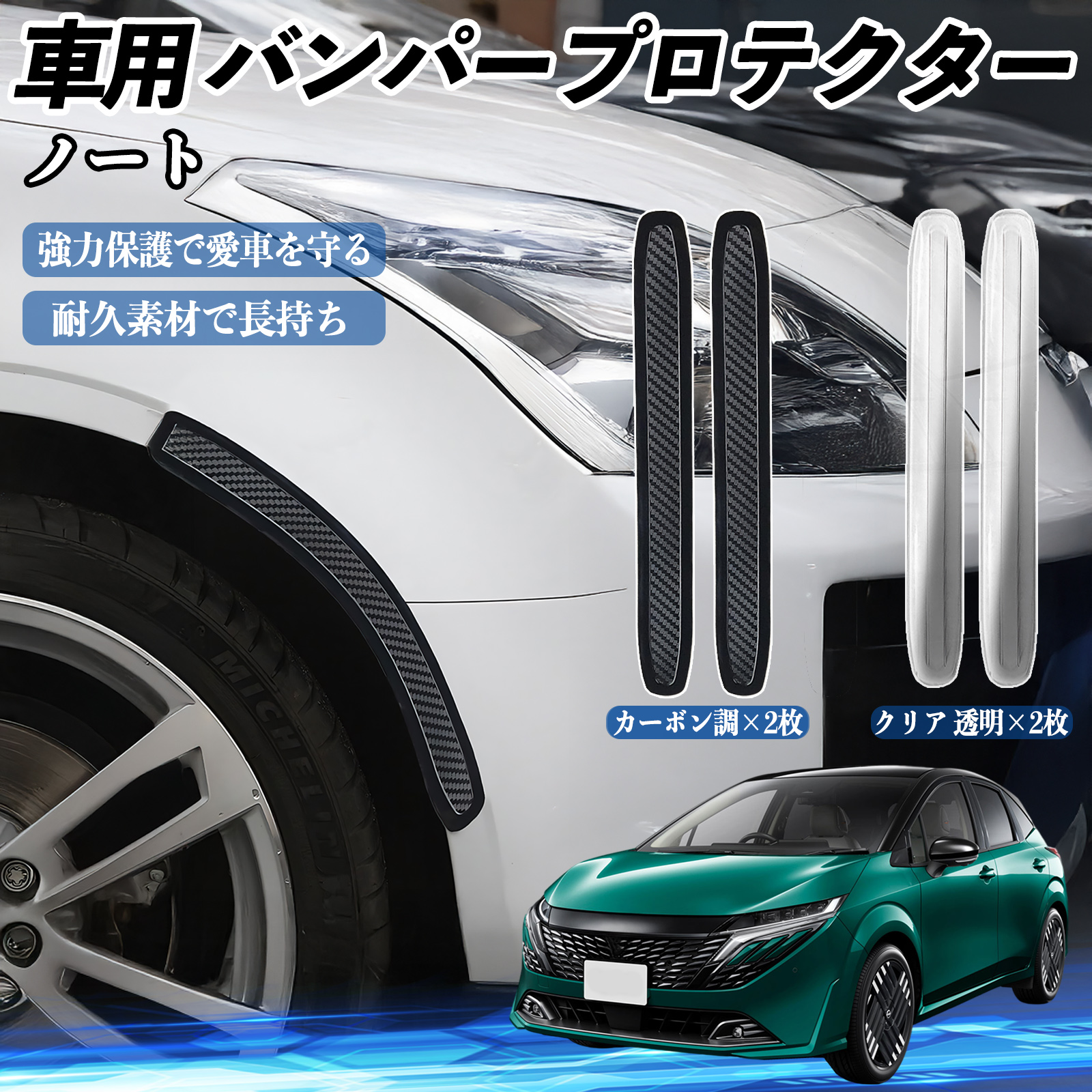 日産 ノート オーラ 車用 バンパープロテクター バンパーガード フロント ドアガード 傷防止 保護 ステッカー 2枚セット WeCar