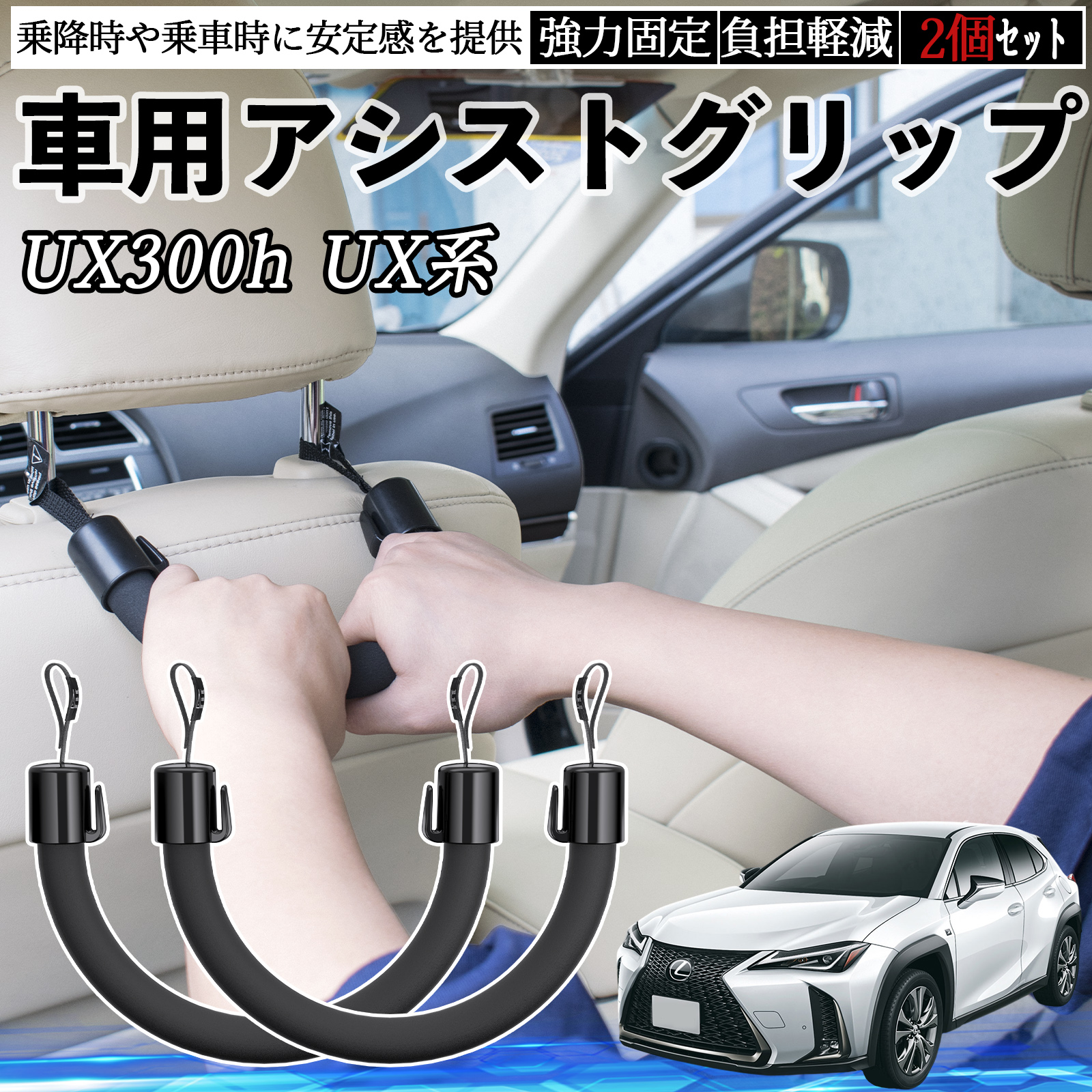 レクサス UX300h UX250h UX200 UX300e 車用 アシストグリップ セフティーグリップ シートフック アシストハンドル 後部座席 補助 2個セット WeCar
