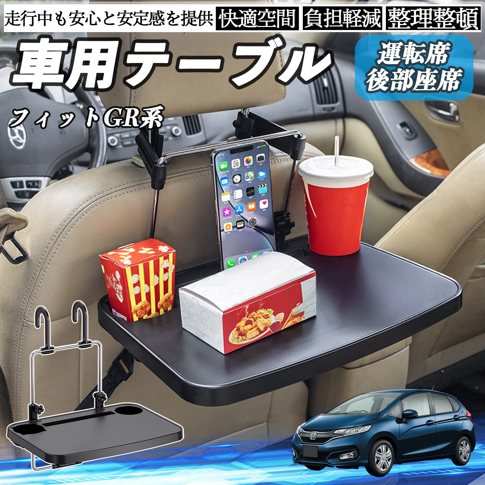 本田 フィット?FIT GR系 ハイブリッド 車 テーブル 運転席 後部座席 ハンドルテーブル デスク 食事 仕事 ヘッドレスト ドリンクホルダー WeCar