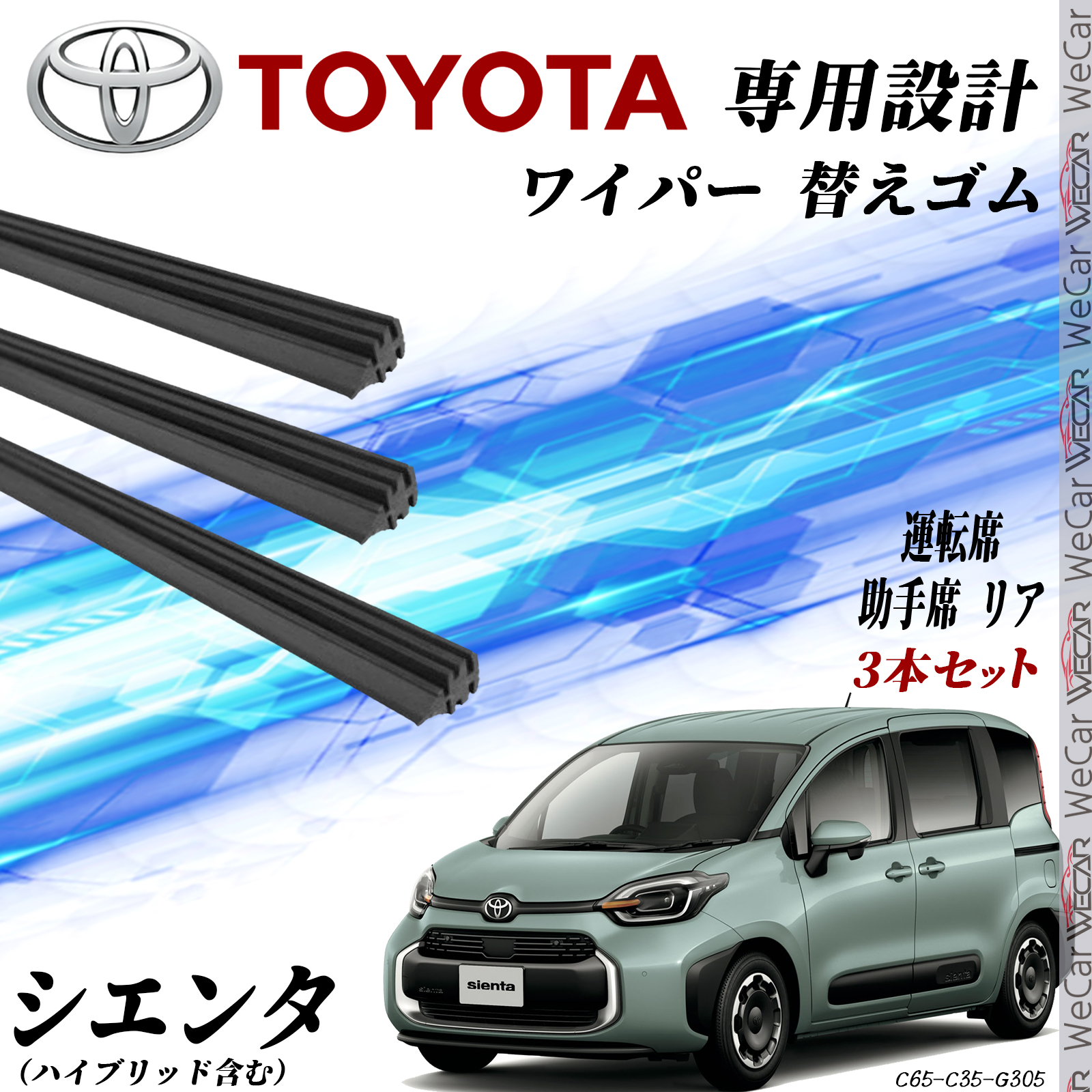 シエンタ NCP175G NHP170G NSP170G NSP172G ワイパー 替えゴム 適合サイズ 互換品 運転席 助手席 リア H30.9- 交換セット 3本セット WeCar