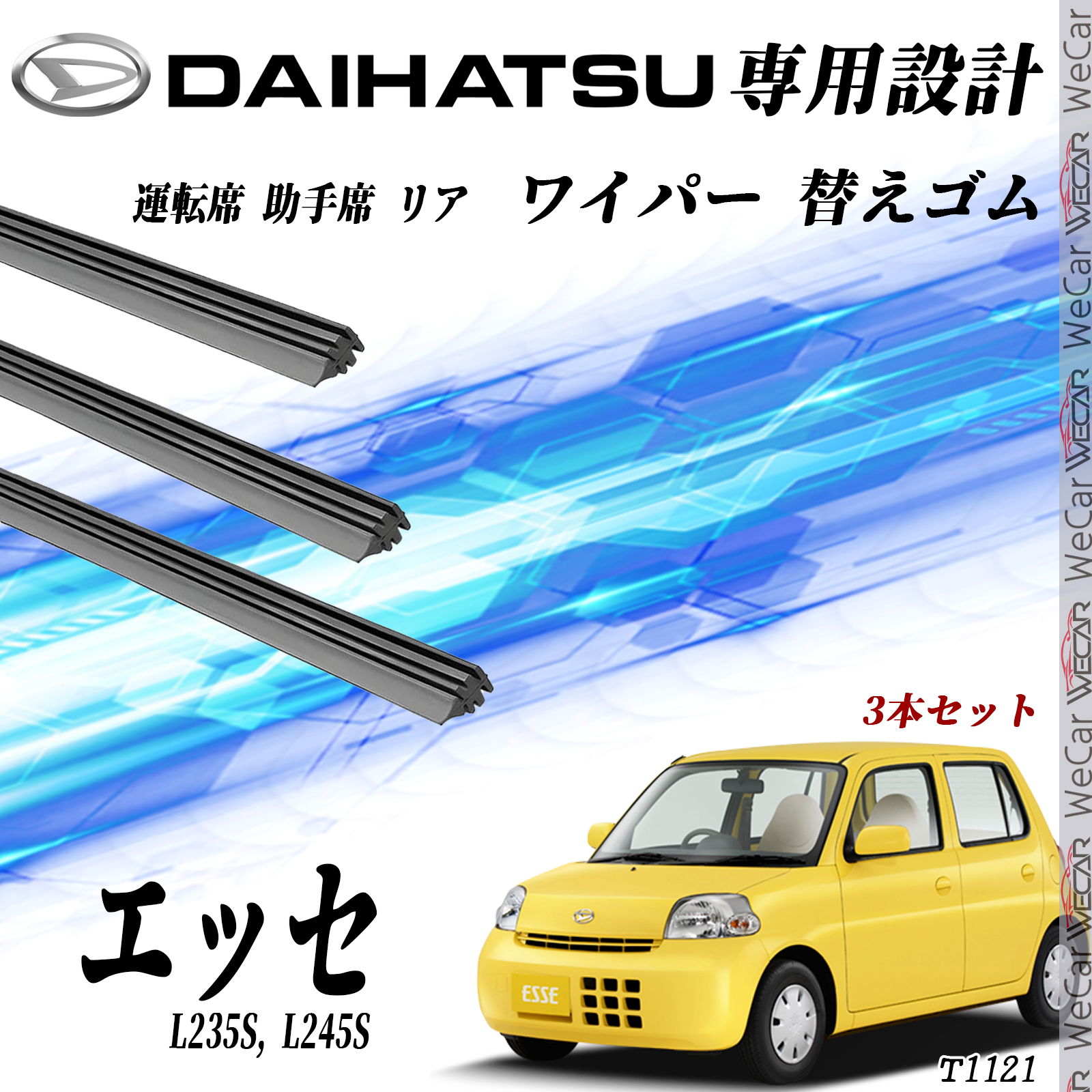 ダイハツ エッセ ワイパー 替えゴム 適合サイズ 交換 セット 互換 運転席 助手席 リア 3本セット