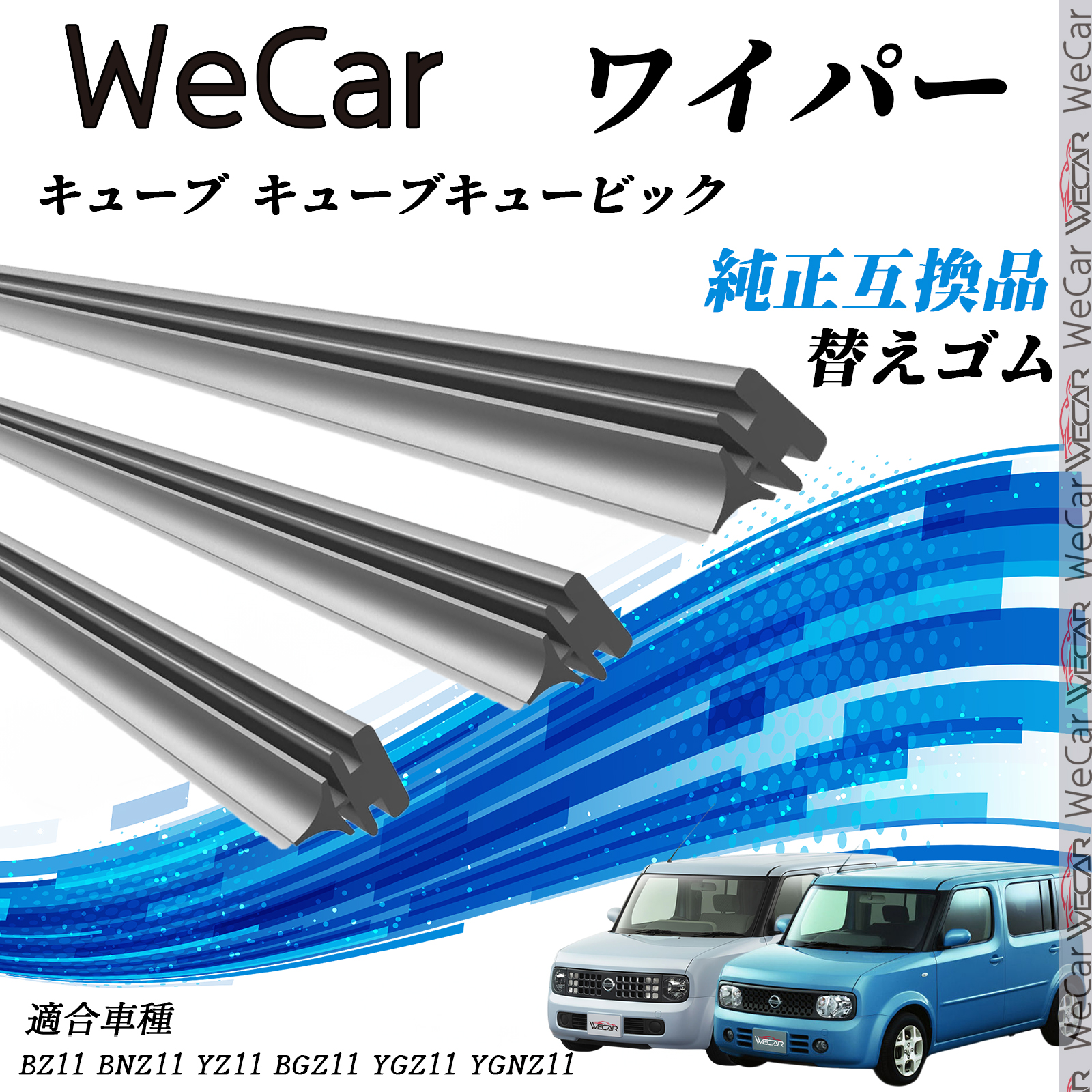 日産 キューブ キューブキュービックBZ11 BNZ11 YZ11 BGZ11 YGZ11 YGNZ11 ワイパー 替えゴム 適合サイズ 純正互換品 交換セット 天然ゴム 運転席 助手席 リア