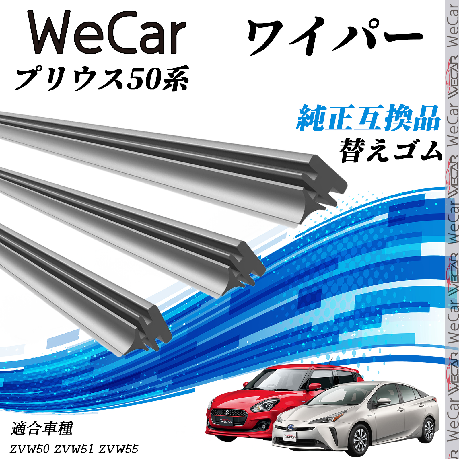 トヨタ プリウス50系 新タイプZVW50 ZVW51 ZVW55 ワイパー 替えゴム 適合サイズ 純正互換品 交換セット 天然ゴム 運転席 助手席 リア 3本セット WeCar