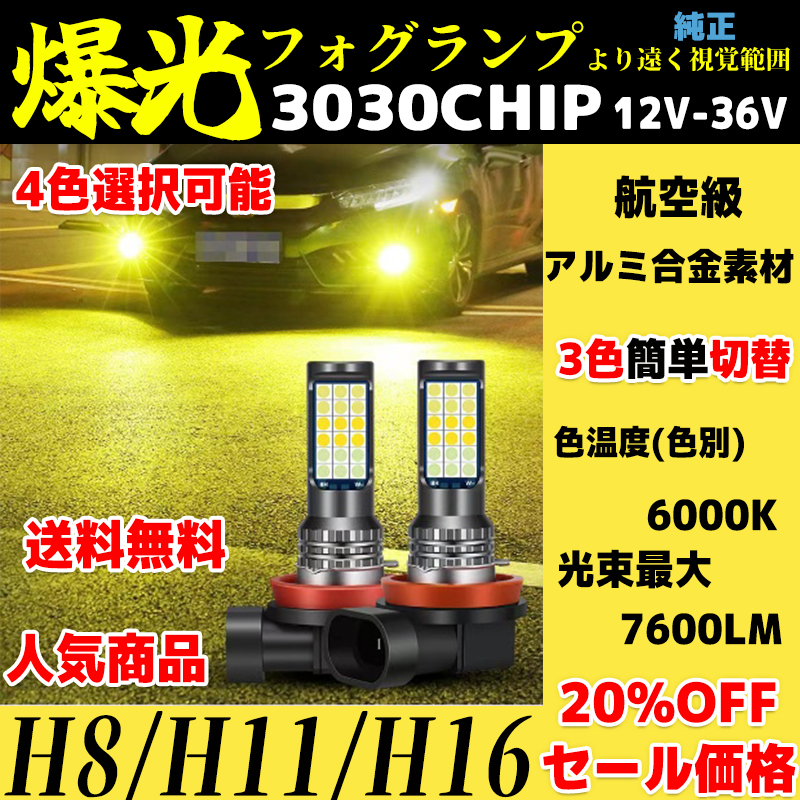 フォグランプ LED イエロー ライトブルー 3色切替 H8 H11 H16 黄色 白色 切り替え 12V LEDバルブ ルムラン フォグライトキット ルムラン