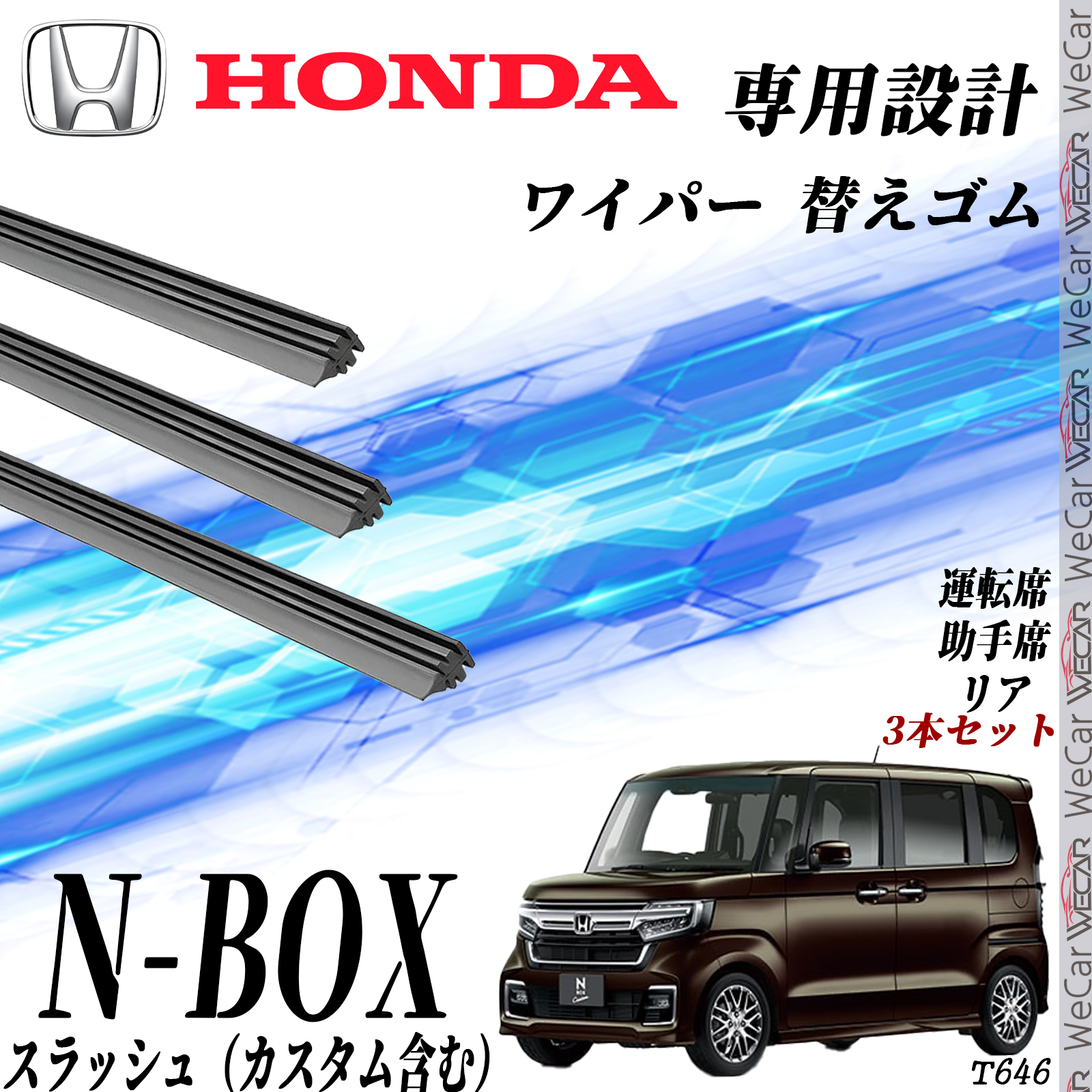 NBOX スラッシュ専用 ワイパー 替えゴム 適合サイズ 互換品 運転席 助手席 リア 3本セット ホンダ 交換セット N-BOX スラッシュ専用 高品質天然ゴム WeCar