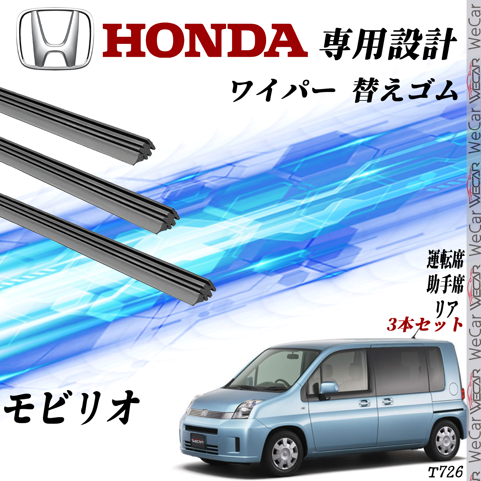 モビリオ ワイパー 替えゴム 適合サイズ 互換品 運転席 助手席 リア 3本セット ホンダ 交換セット 高品質天然ゴム WeCar