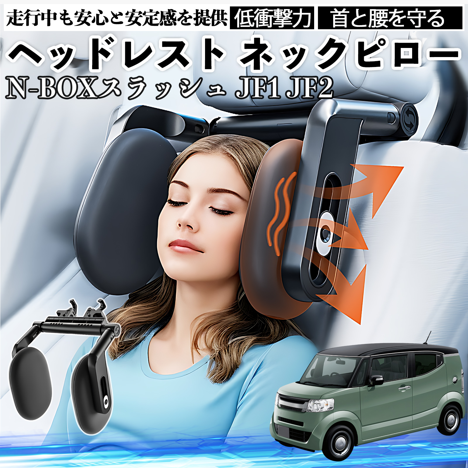 本田 N-BOXスラッシュ JF1 JF2 ヘッドレスト ネックピロー 車 ネックパッド 枕 クッション 子供 大人 首枕 首サポート 睡眠 車中泊 WeCar