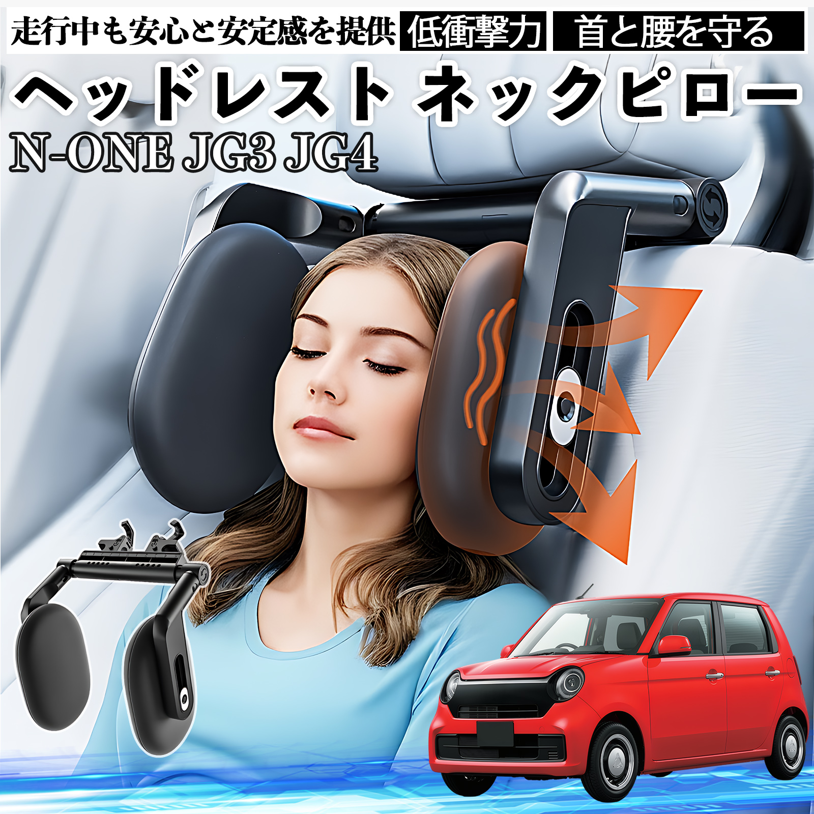 本田 N-ONE JG3 JG4 ヘッドレスト ネックピロー 車 ネックパッド 枕 クッション 子供 大人 首枕 首サポート 睡眠 車中泊 WeCar