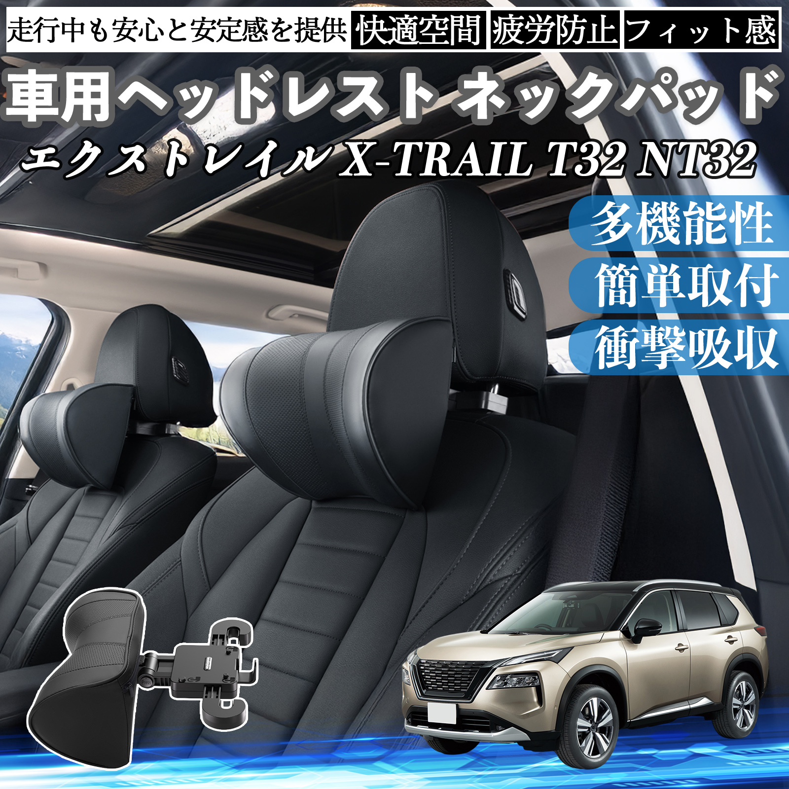 日産 エクストレイル X-TRAIL T32 NT32 車ヘッドレスト ネックパッド 車 首クッション 上下 前後 調節可能 首枕 頚椎サポー 仮眠 車中泊 WeCar