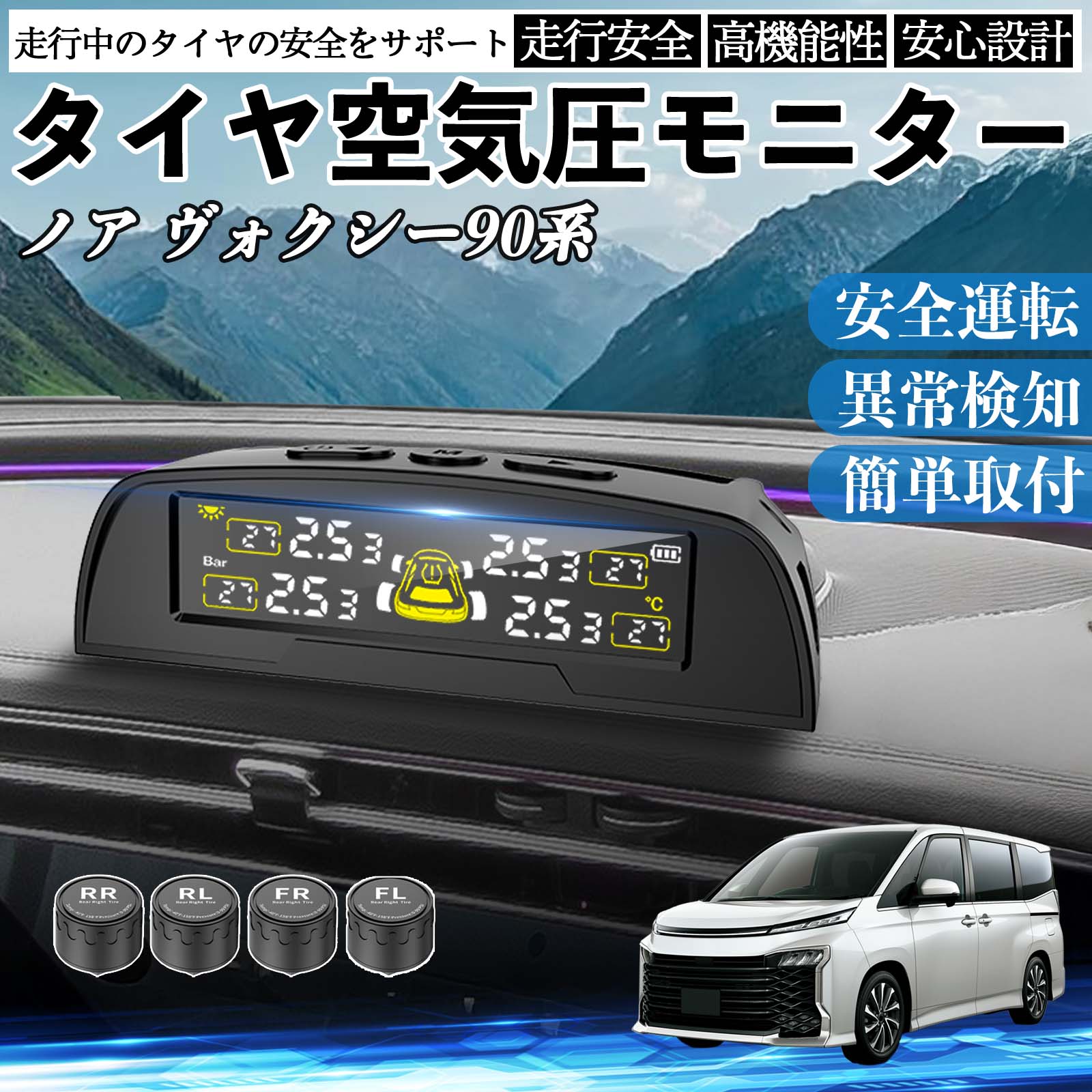 トヨタ ノア ヴォクシー 90系 タイヤ空気圧センサー タイヤ 空気圧モニター TPMS 車 センサー 空気圧計 監視 ソーラー充電 USB充電 WeCar