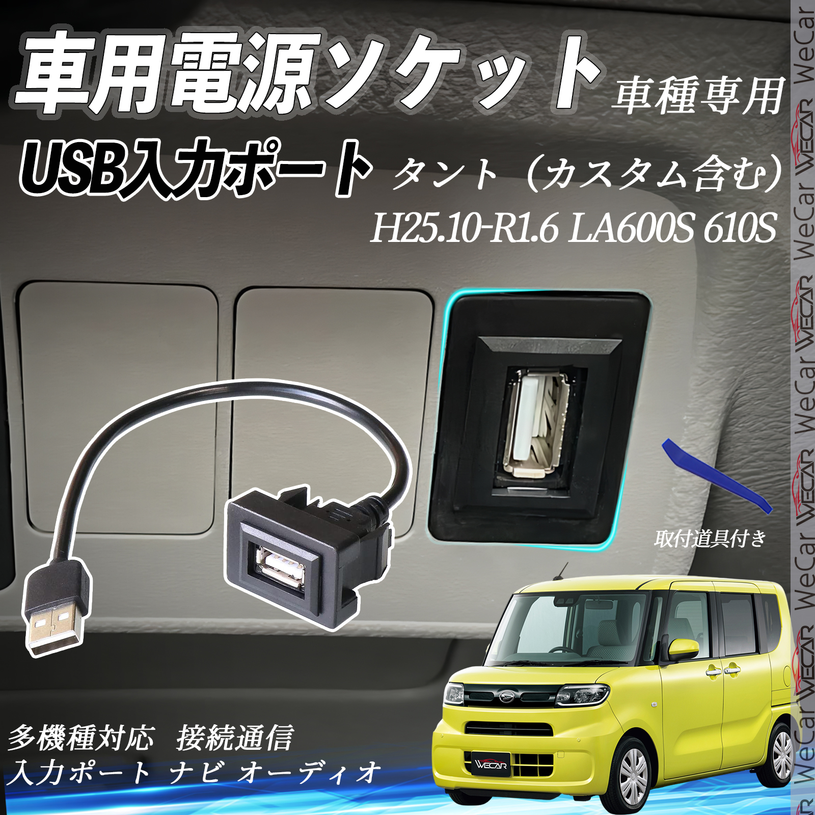 タント(カスタム含む) LA600S 610S USBポート増設 USB入力ポート ナビ オーディオ 接続通信パネル スイッチホール トヨタ車系用 タイプA WeCar