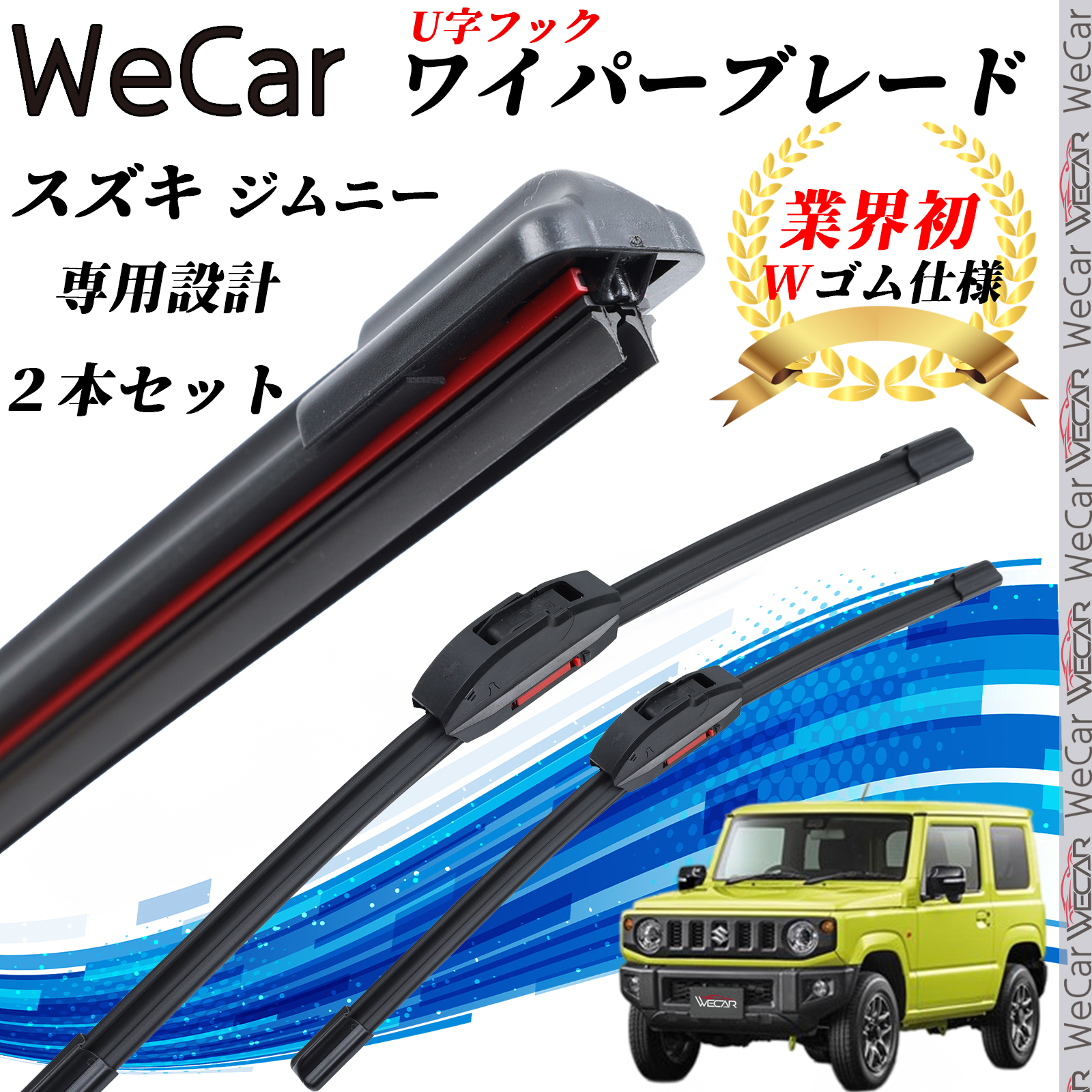 ジムニー JB64W ワイパーブレード フラット エアロワイパー デュアルラバー 一体型 U字フック U400mm U400mm グラファイト 2本 WeCar