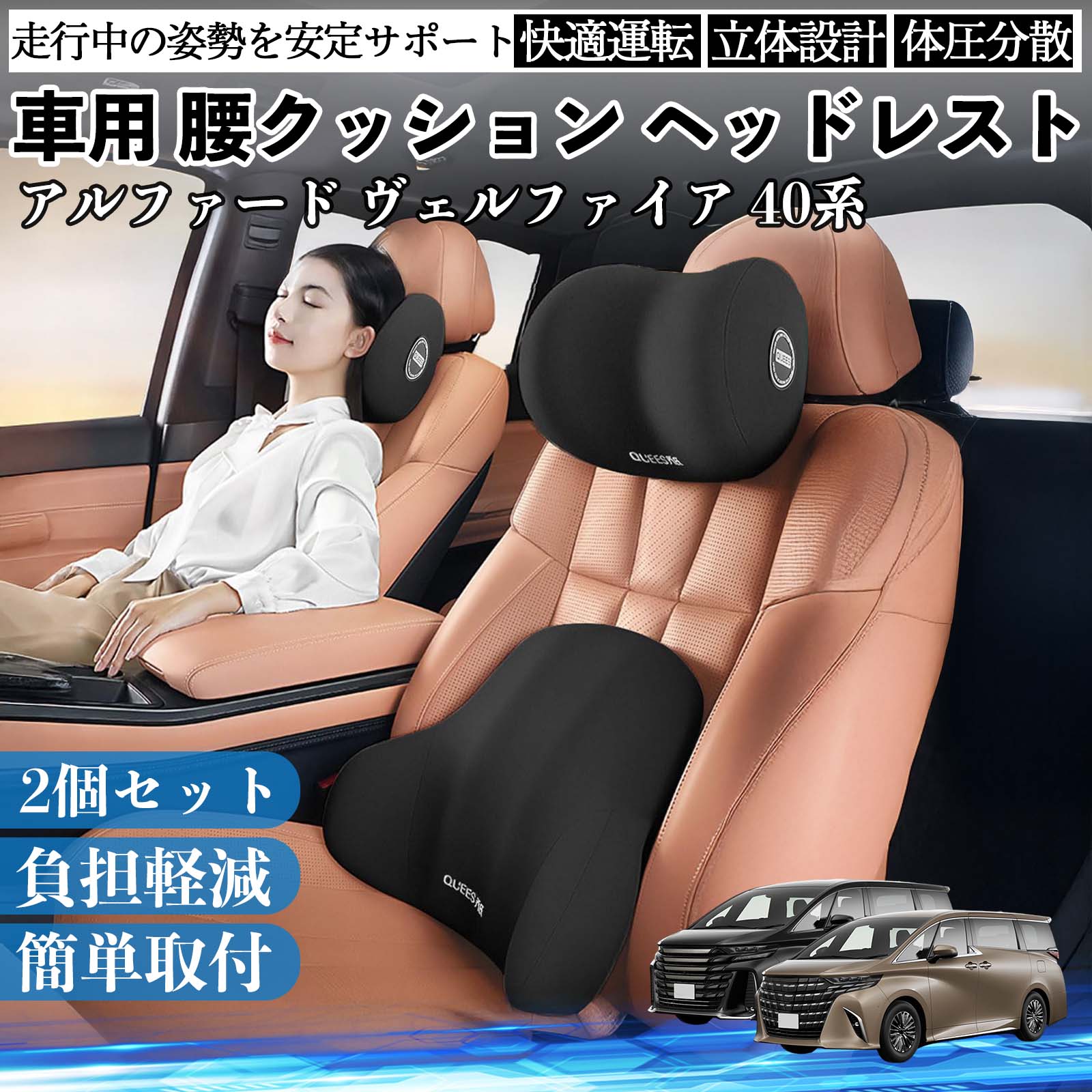 トヨタ アルファード ヴェルファイア 40系 車用 腰クッション ヘッドレスト ランバーサポート 頚椎サポート 低反発 メモリーフォーム 疲労軽減 WeCar