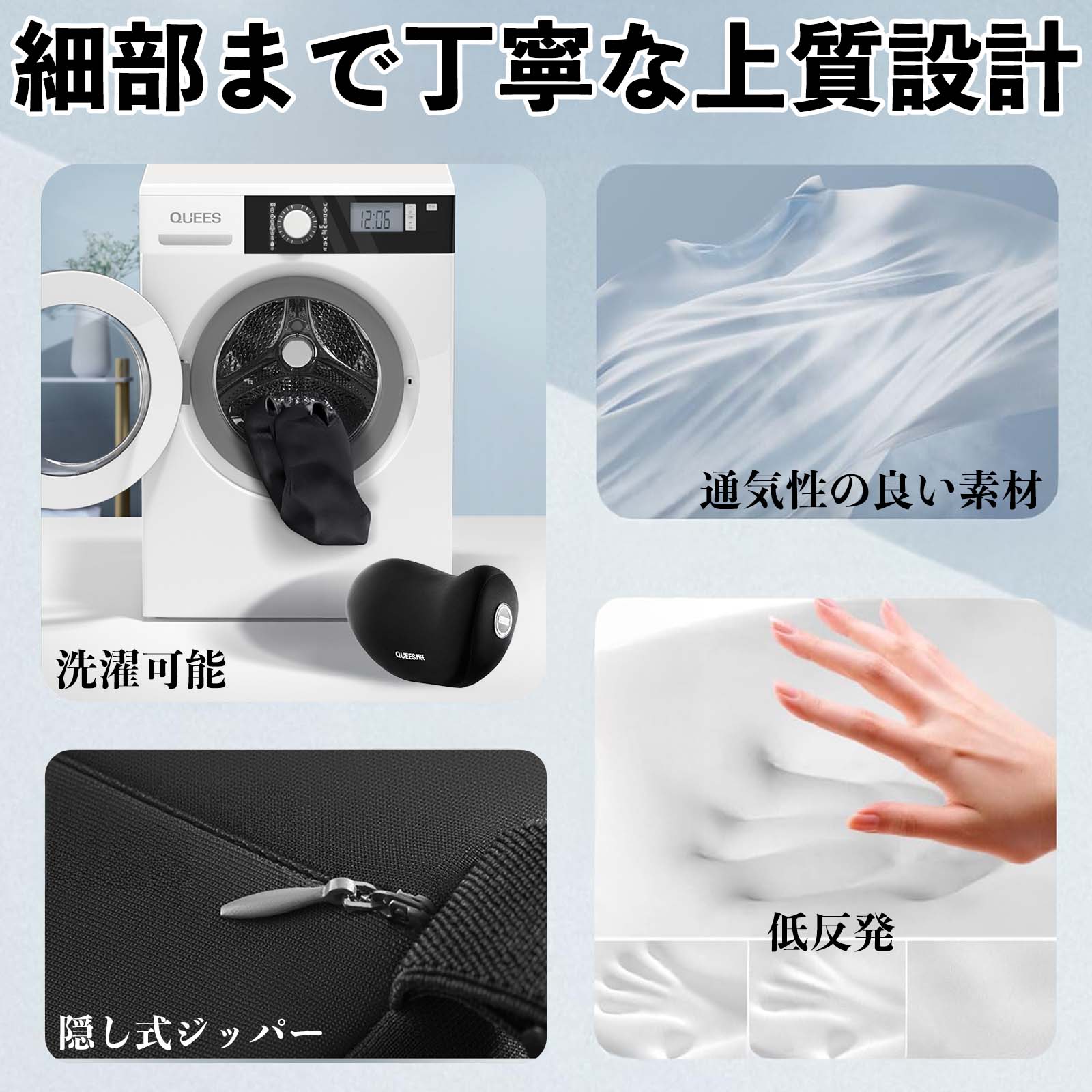 肌触りが良く、長時間使用でも蒸れにくい設計。カバーは取り外して洗濯機洗い可能で、清潔に保てます。